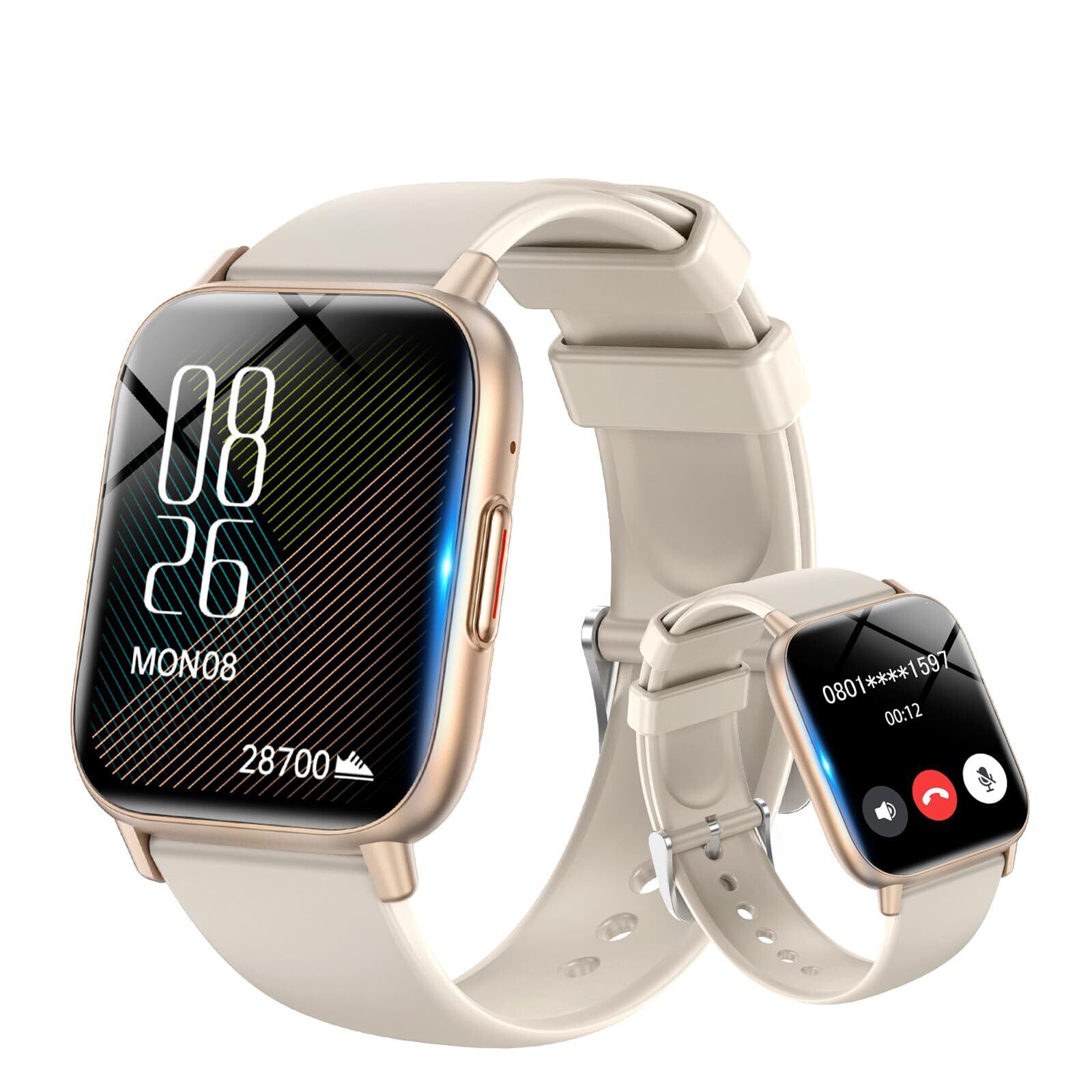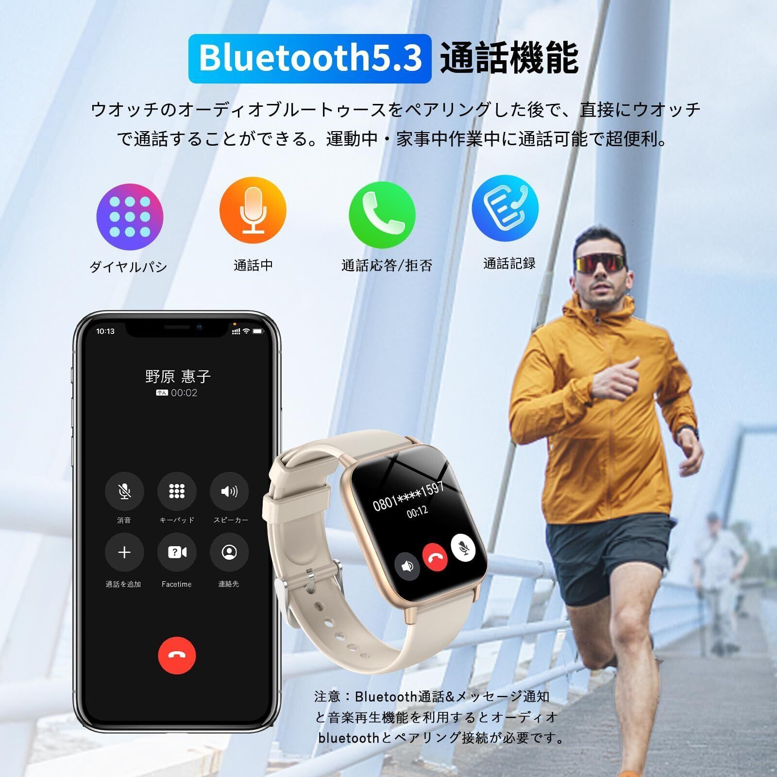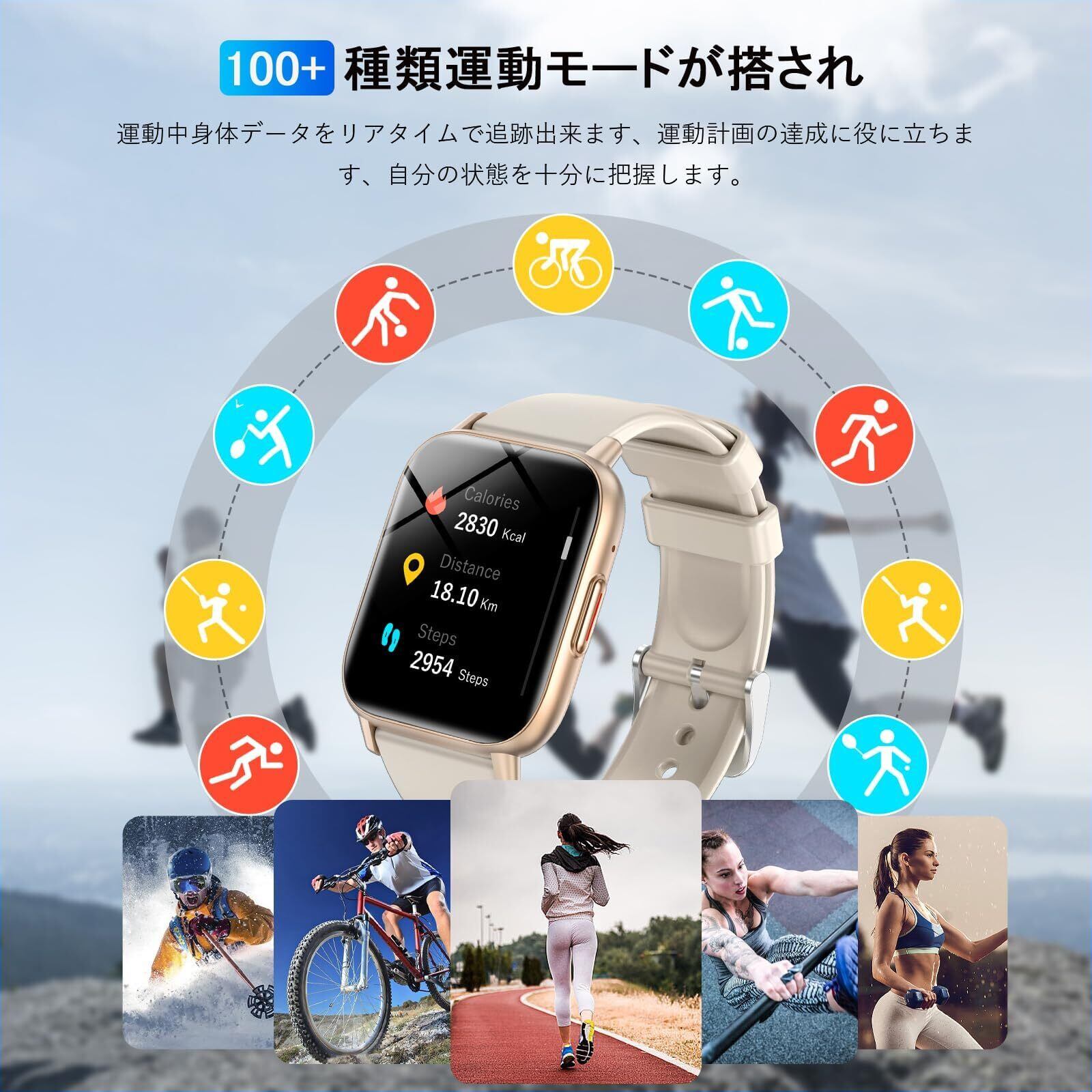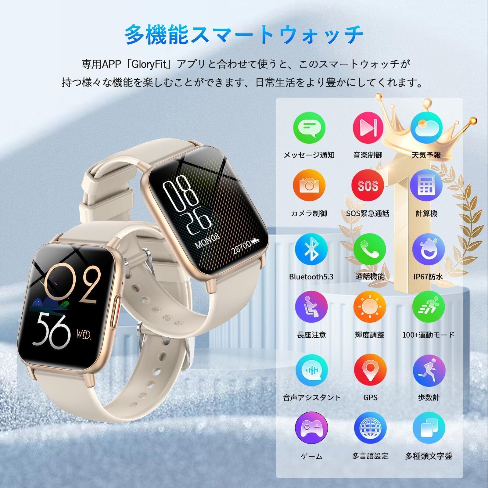 スマートウォッチ【2025年性能最強モデル】スマートウォッチ iPhone対応 アンドロイド対応 スマートウォッチ Bluetooth5.3通話機能付き 1.85インチ大画面 Smart Watch 100多種類な運動モード 腕時計 歩数計 天気予報 音楽制御 文字盤自由設定 多言語 長持ちバッテリー IP67防水 スポーツウォッチ 多種機能付き 技適認証済み 日本語説明書付き(ゴールド)