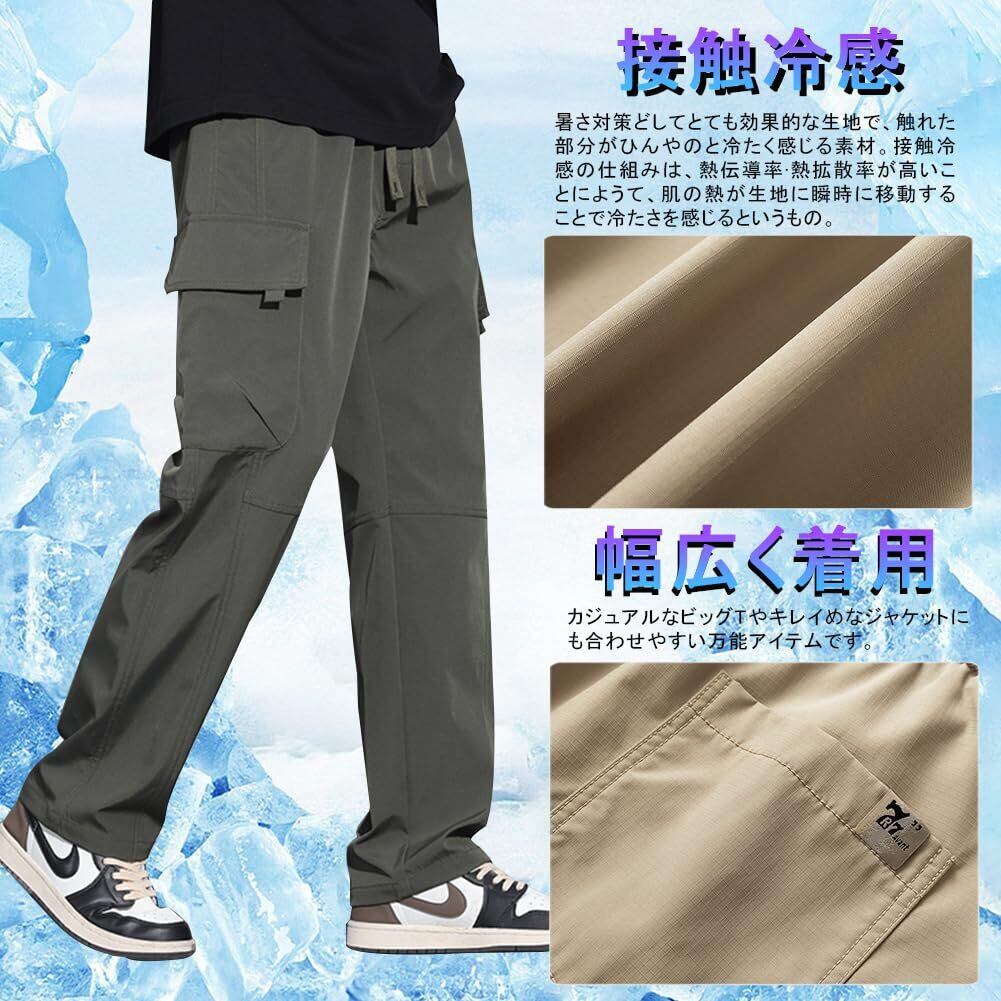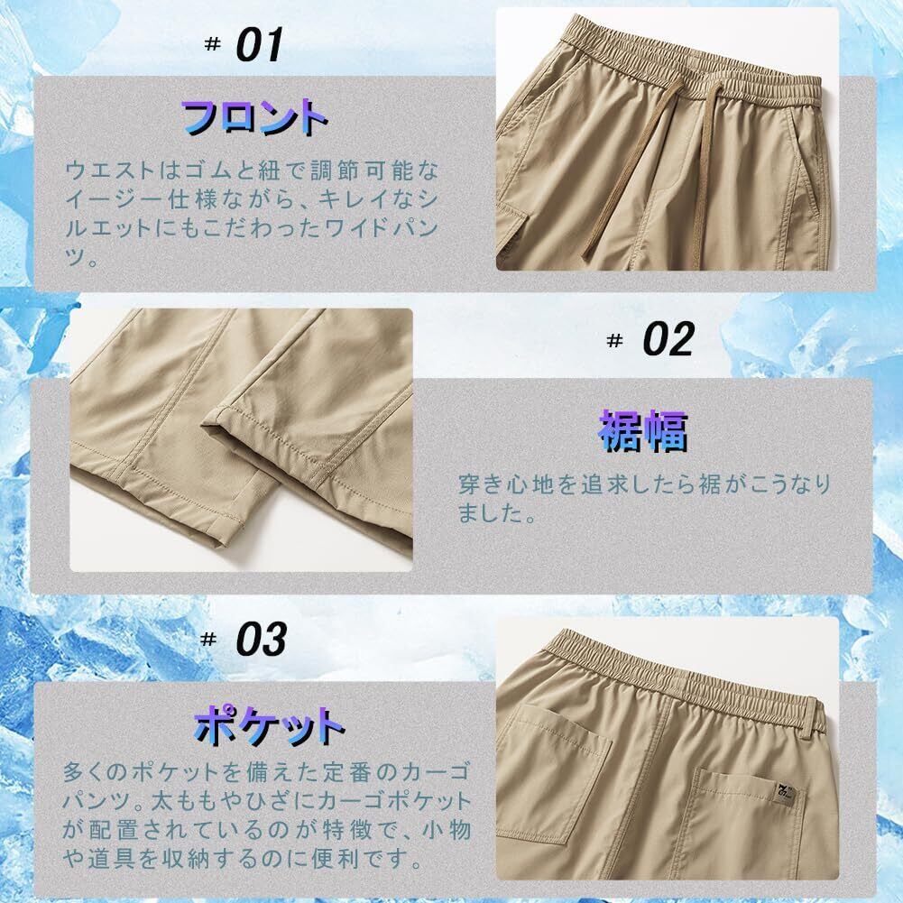 接触冷感・吸汗速乾、季節を感じさせるナイロン素材のカーゴパンツです。サラッとした滑らかな肌触りで暑い日でも快適に過ごせて、ダボつきすぎず、春夏秋にもさわやかに着られます。