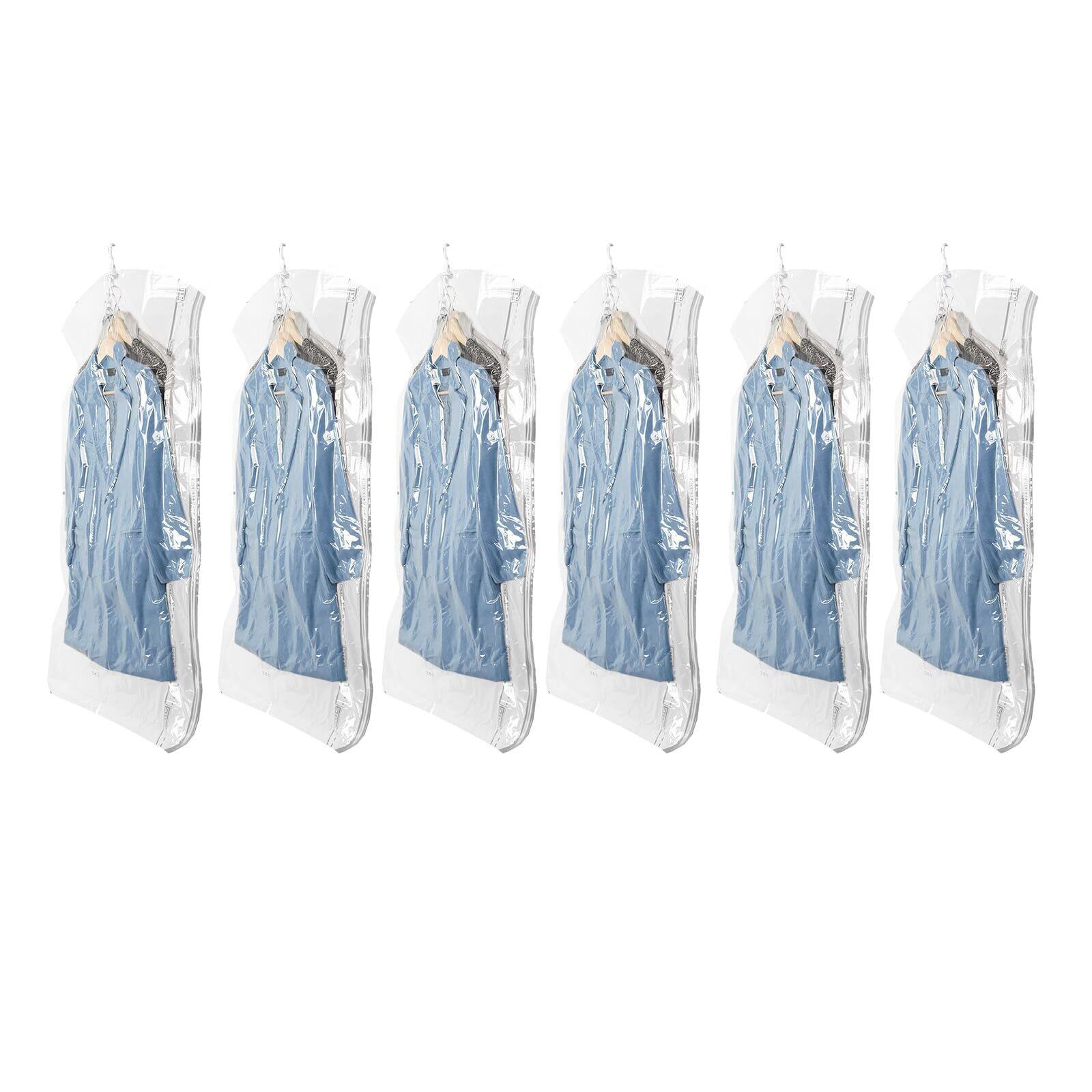 CLEVHOM 圧縮袋 吊るせる衣類圧縮袋 135 x 70cm 6枚入 吊り下げ 真空バッグ カビ ダニ対策 防塵 防湿 着物収納 コート 洋服 ジャケット スーツ用 大容量 360度回転 掃除機対応 省スペース 引越し 衣替え 旅行用 透明