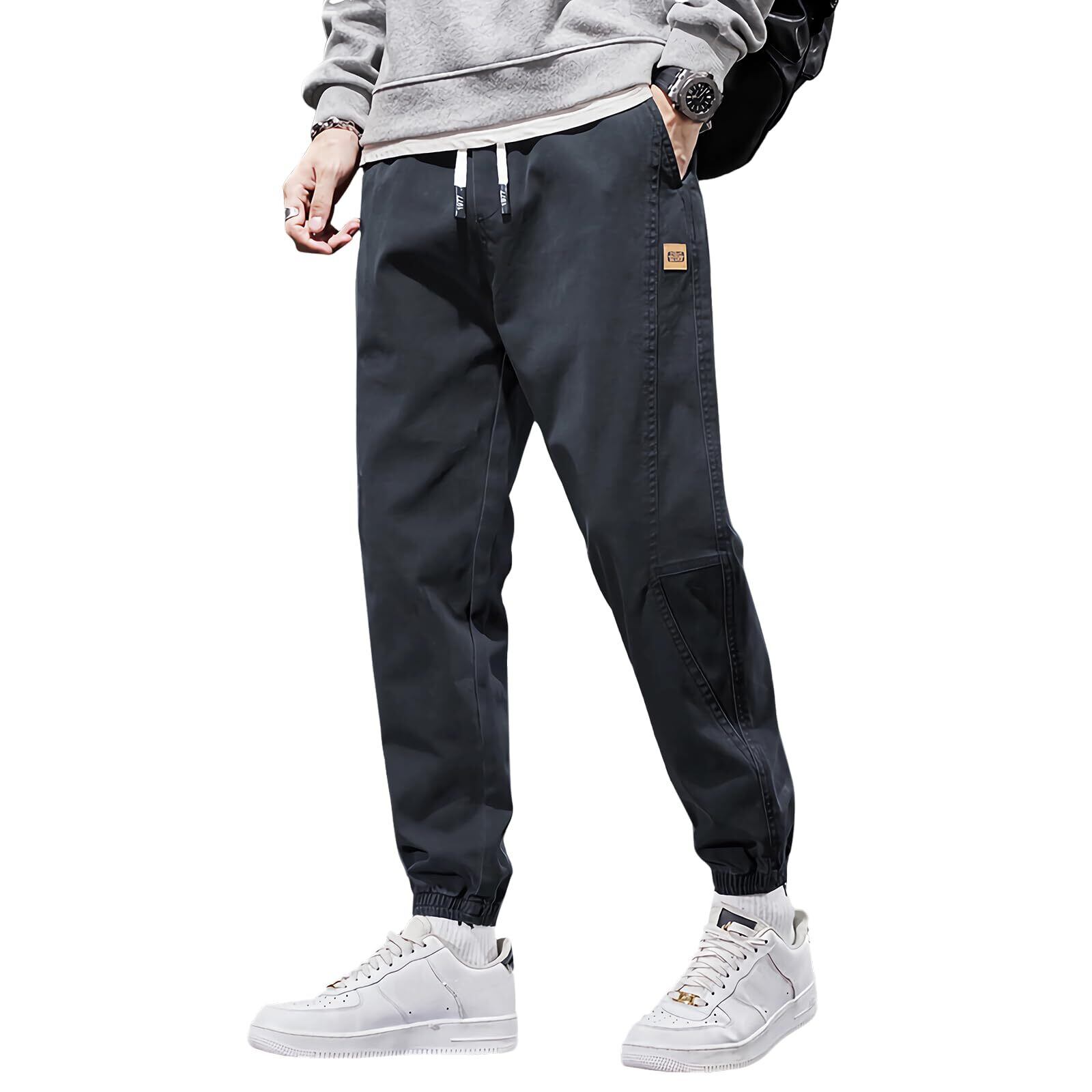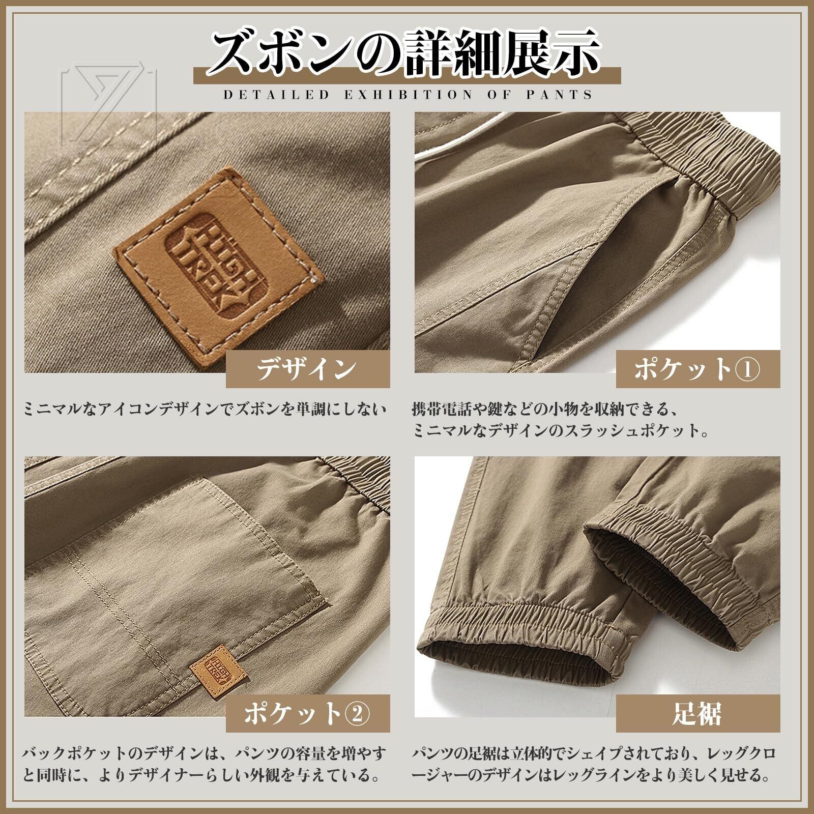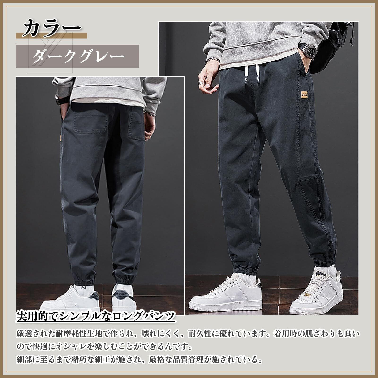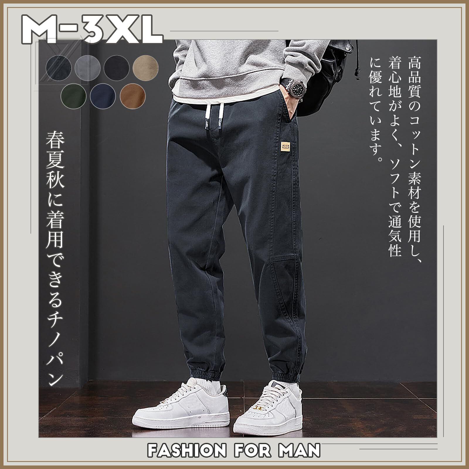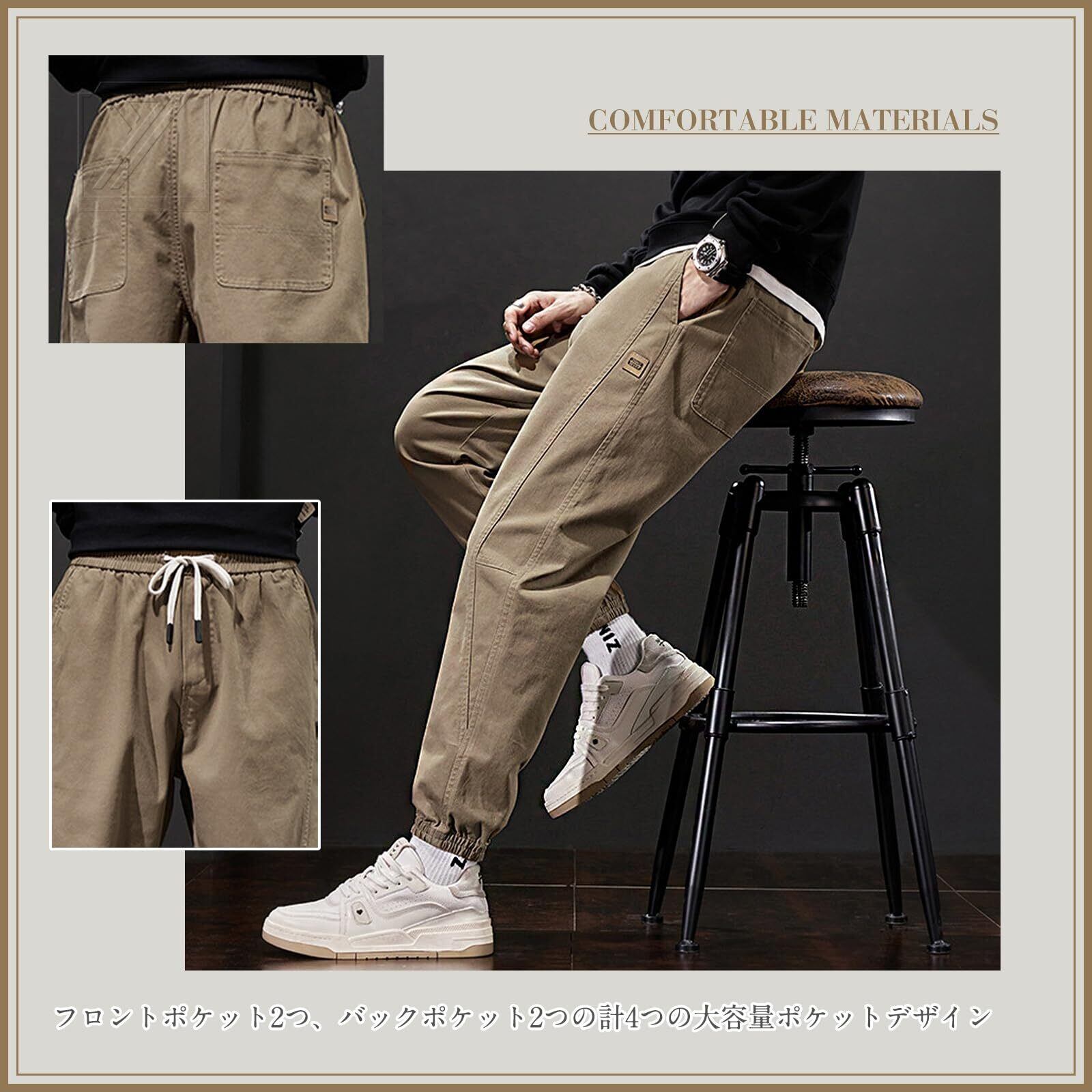 [Kayiyasu] チノパン メンズ ズボン パンツ ワークパンツ 大きいサイズ 裾リブ M~3XL ウエストゴム リラックス ボトムス 綿 黒 調整紐 アンクル丈 9分丈 ゆったり ずぼん かっこいい 無地 人気