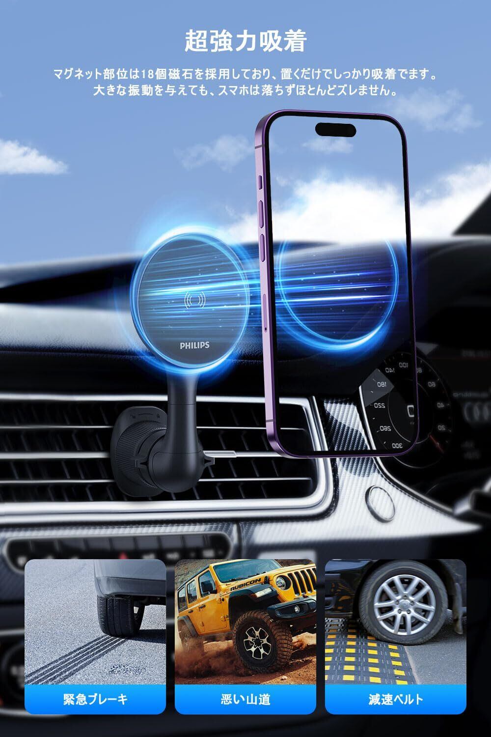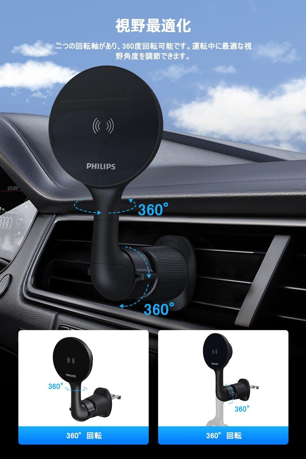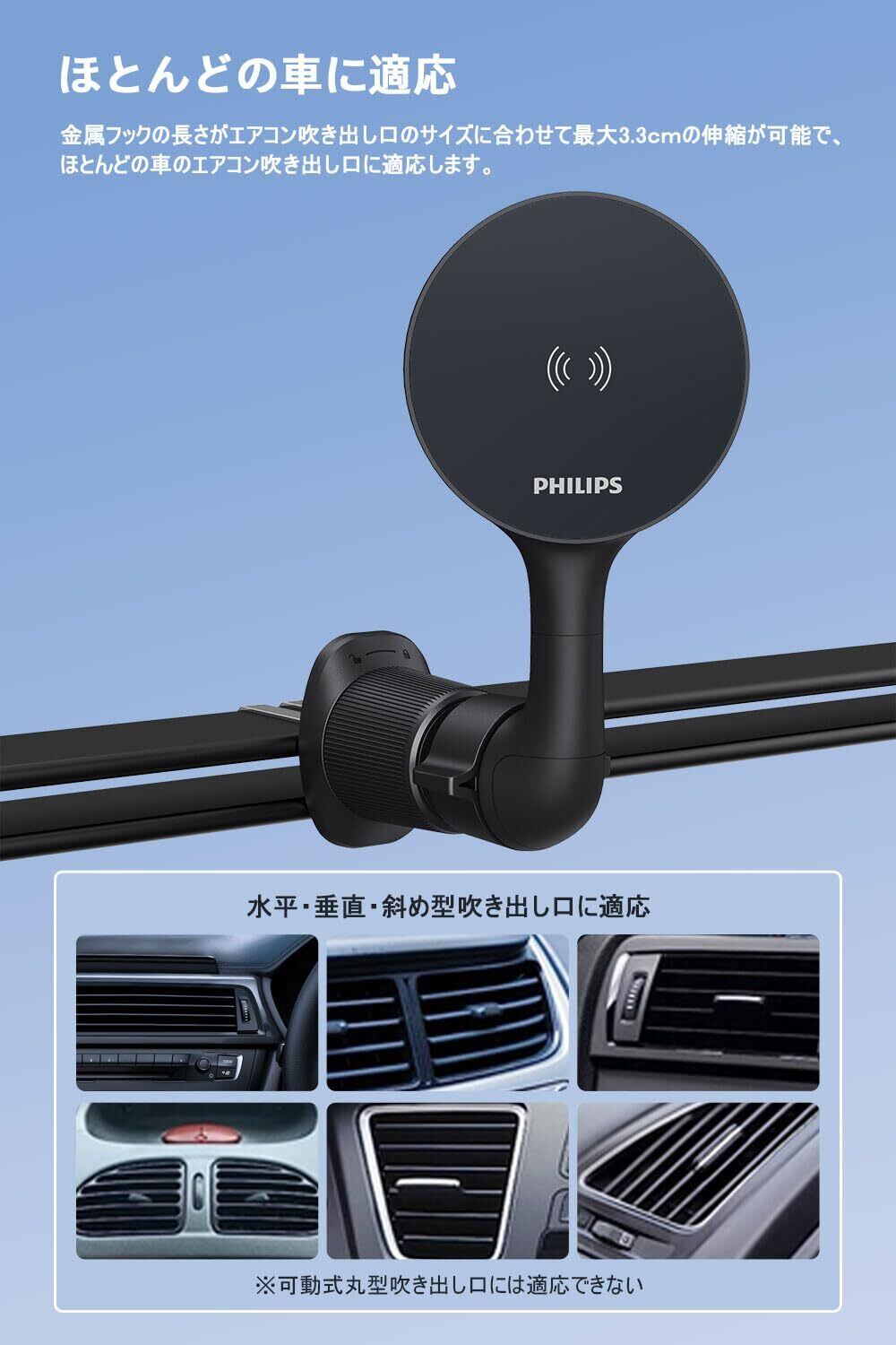 Philips (フィリップス) 車載スマホホルダー マグネット エアコン 吹き出し口 15W急速充電 金属フック magsafeホルダー 超強磁力 瞬間吸着 360°回転可能 マグセーフ携帯ホルダー 片手操作 コンパクト設計 車用ホルダー カー用品 ほとんどの車種/機種対応 DLK4251Q