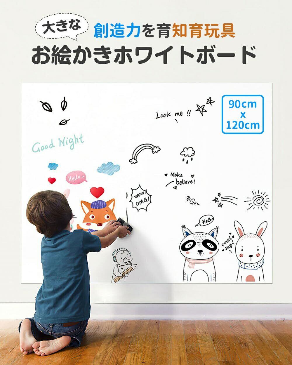 ホワイトボード シート 粘着式 90x120cm 壁に貼る ホワイトボード マグネット対応 取り付け簡単 はがせる 自由に裁断 子供 落書き 伝言板利用 オフィス 掲示板 メモー用に対応 (90x120cm)