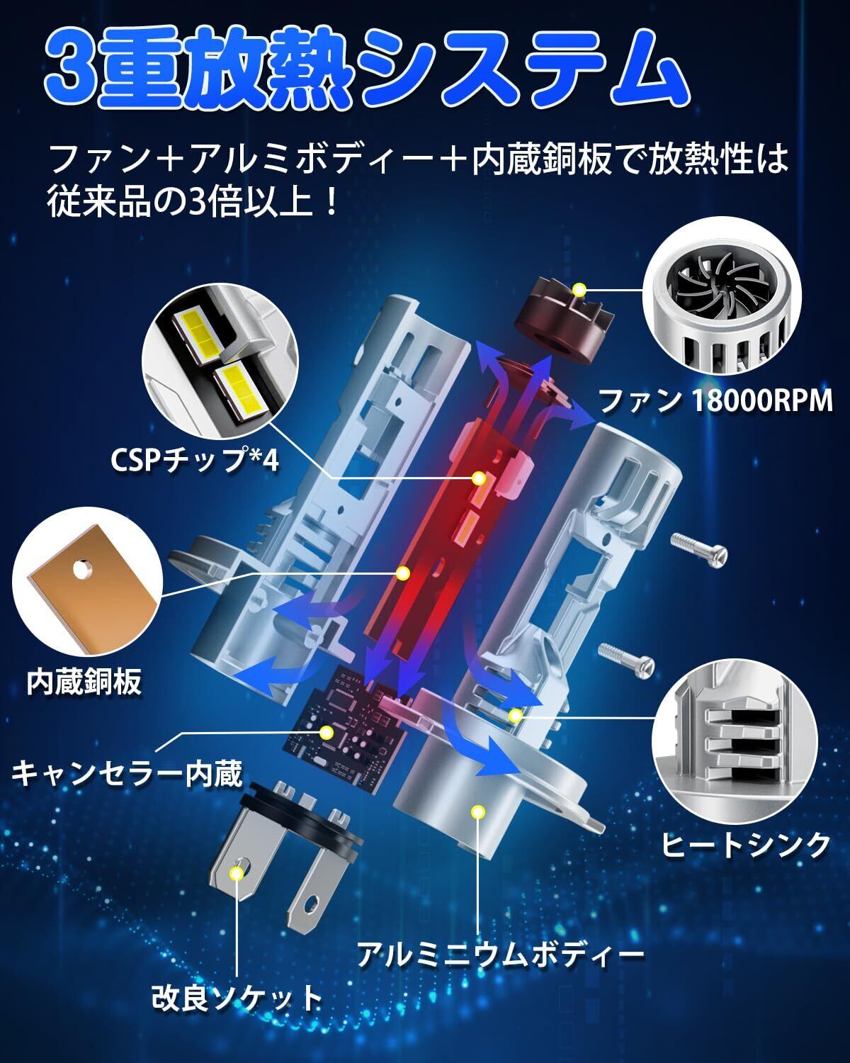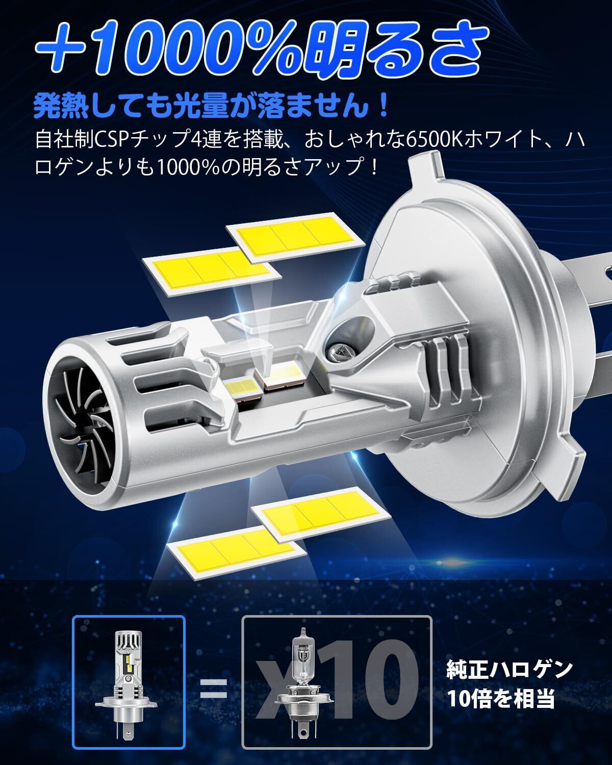 「H4 LED 超爆光モデル」SUPAREE H4 LED ヘッドライト 車検対応 爆光 10倍明るさUP 20000LM Hi/Lo切替 6500K 車/バイク用 DC12V ハロゲンサイズ 三重放熱 静音ファン 長寿命 高光効LEDチップ ノイズ抵抗