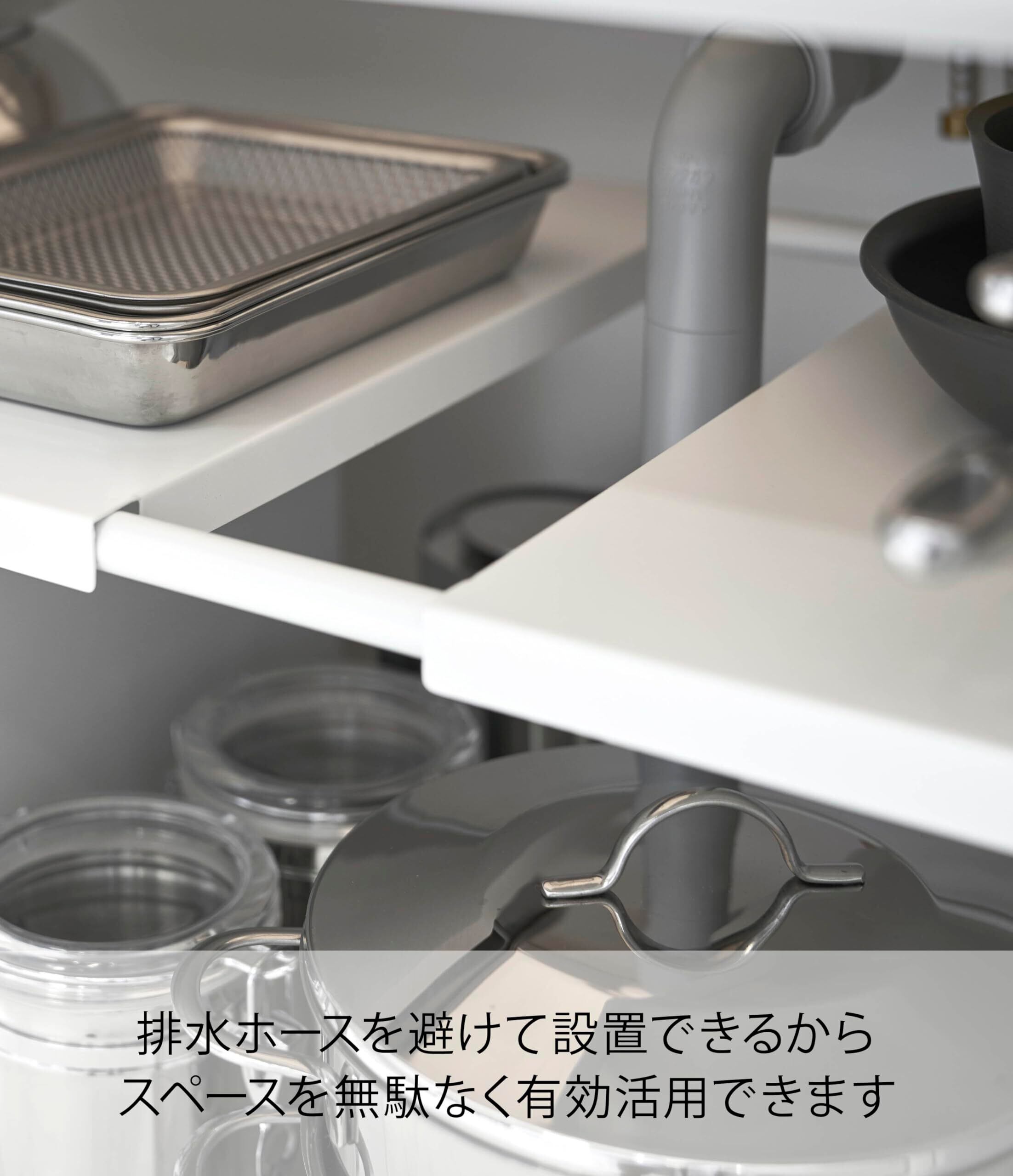 山崎実業(Yamazaki) 伸縮 シンク下ラック 2段 D40 ホワイト 約W50~85XD40XH35cm タワー tower シンク下 収納 6段階高さ調節 横幅調節 4950