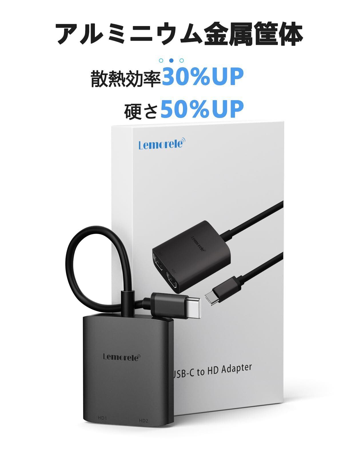 【USB-CデュアルHDMI変換ハブ】サイズ:43*48*11mm;重量:56.3g;ケーブル長さ:11㎝。Type-C Dual HDMIアダプタはビデオ出力デバイスの画面を2つディスプレイに表示させます。外部ウルトラHD大画面で映画やゲームを家族と楽しむことができます。Windows OSはSSTとMSTモードの両方に対応しています。