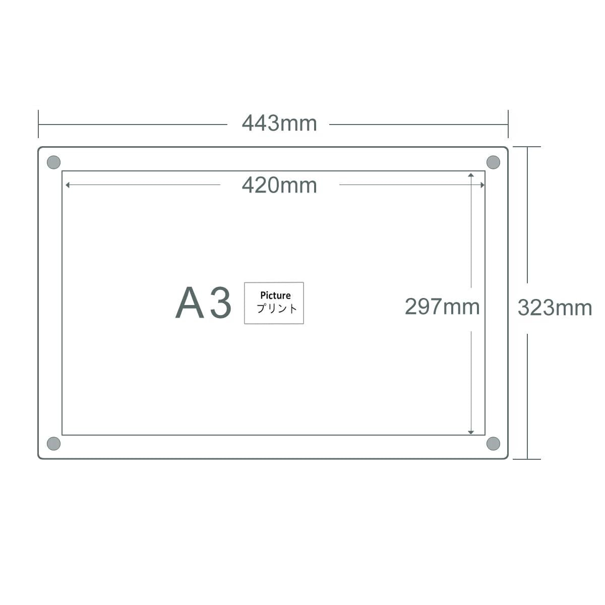 【適用サイズと特徴】こちらのアクリルフォトフレームの外部サイズは323x443mmで、A3判(297x420mm)の写真、賞状や証書用紙に対応しています。厚さ3mmのアクリルボードを使用しており、大切な写真、卒業証書、感謝状、証明書、サイン色紙などを安全に保護・ディスプレイできます。ご注意:購入前に、展示したい紙のサイズを測り、製品画像に記載された寸法がご利用に適しているかを確認してください。
