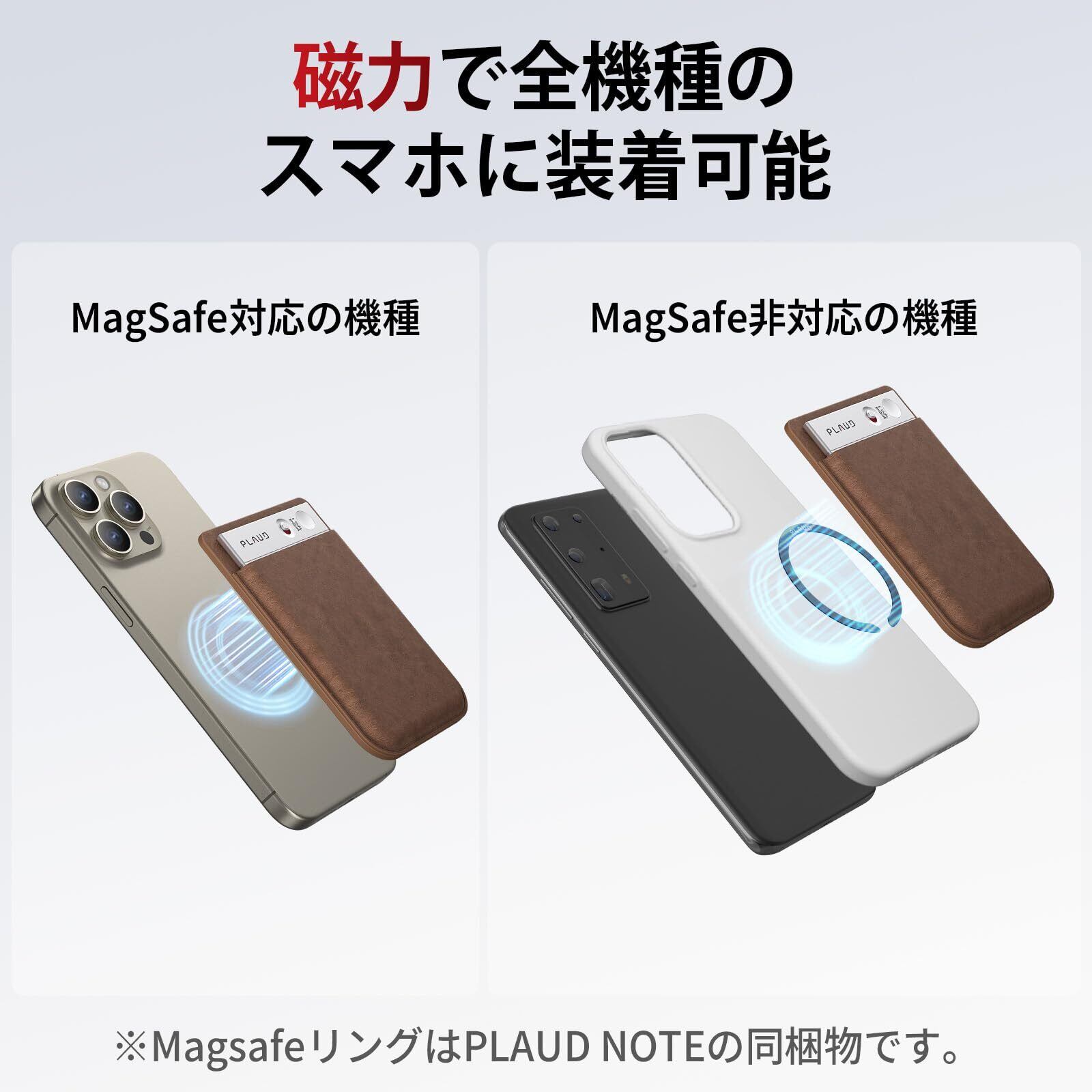 【携帯に取り付け可能】 MagSafe対応のiPhone機種の場合、直接に吸着可能で、MagSafe非対応のiPhone機種とAndroid機種の場合、PLAUD NOTEの同梱物中のマグネットリングと併用して装着できますので、どのタイプの携帯電話に簡単に取り付けて通話録音ができます。