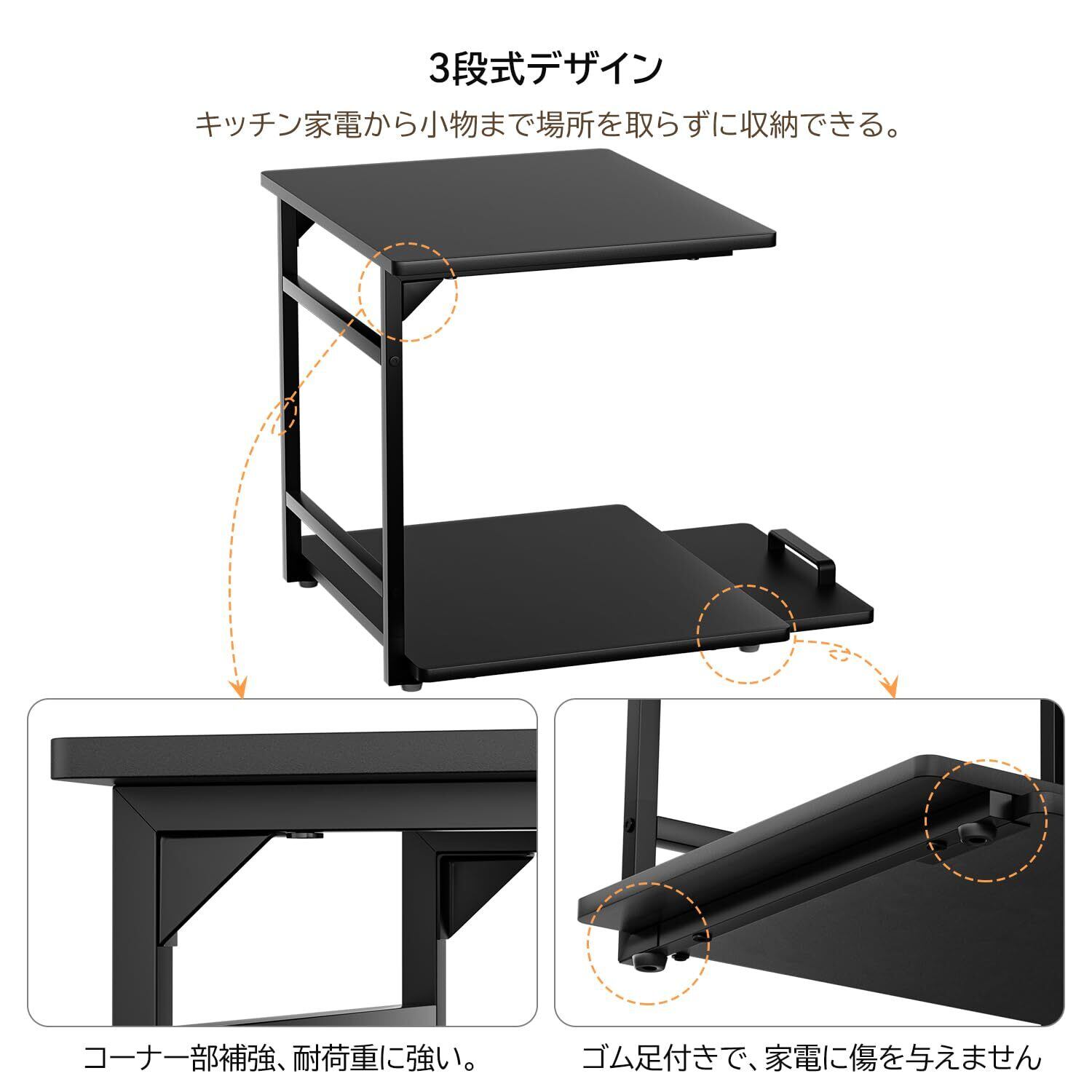 【レンジラック】冷蔵庫ラックは3段式デザインで、キッチン家電や小物を仕分けして格納できます。オーペン式なので、必要な物をおいて置けるに便利し、取り出しもやすいです。頑丈で高耐久なスチールや分厚な木材を採用され、電子レンジ、オーブンレンジ、炊飯器、トースターや、ポット、コーヒーメーカーなど普段使う重たい家電も置けます。