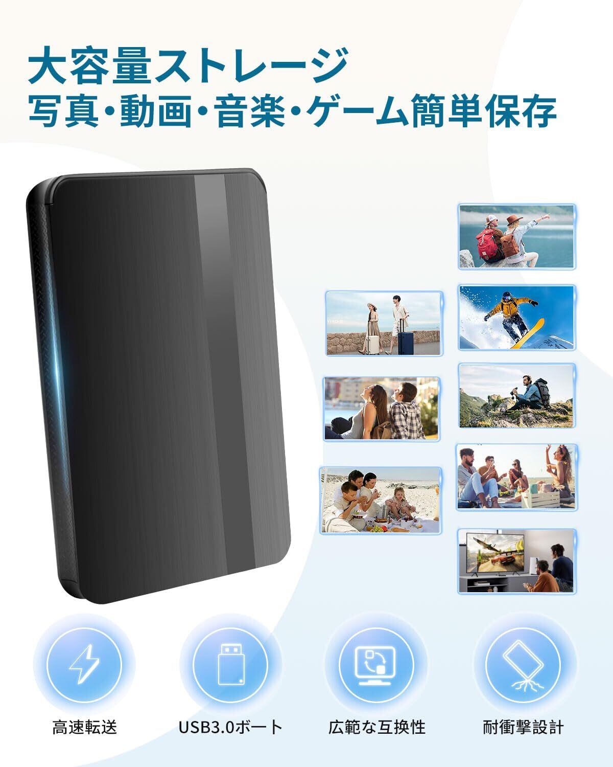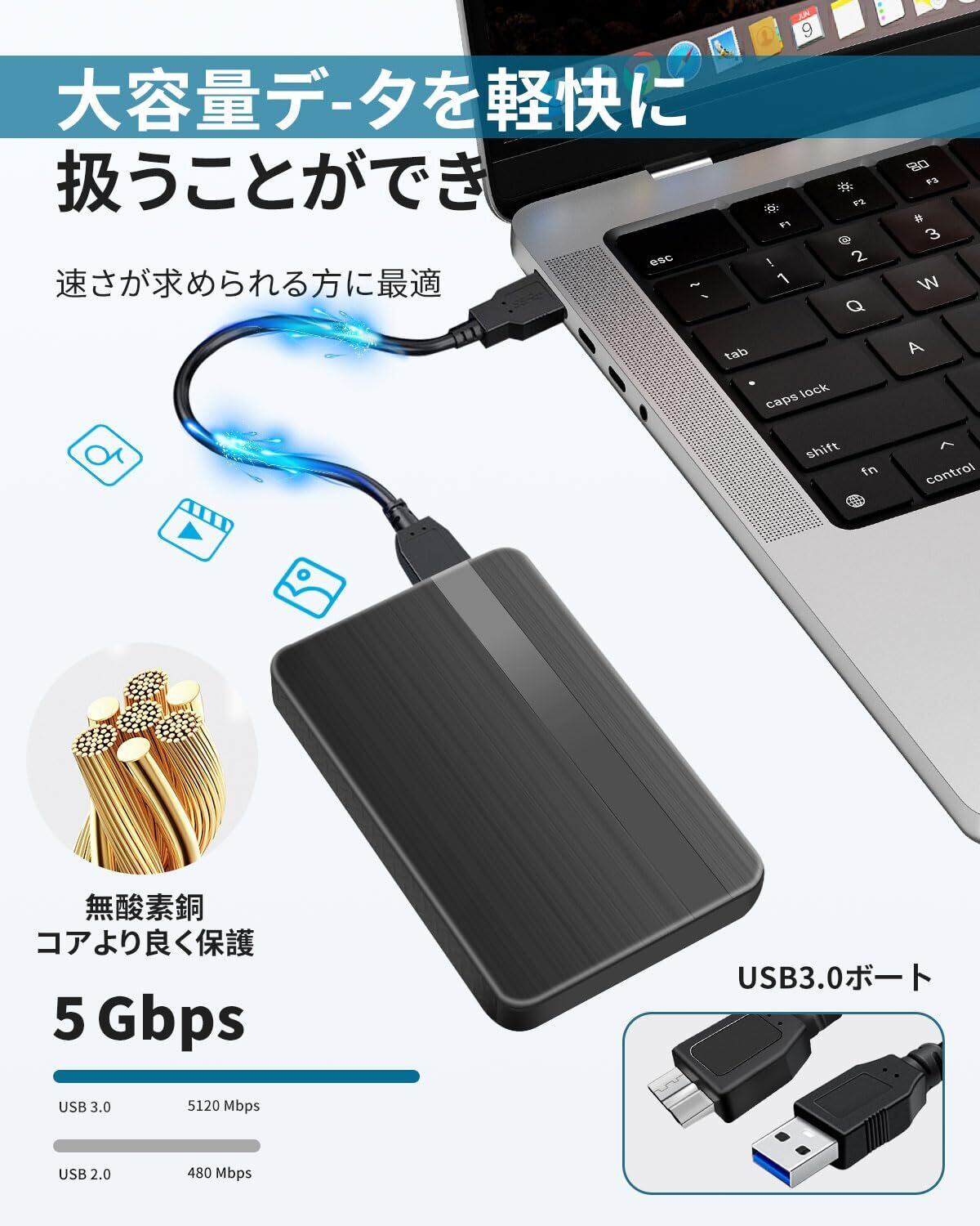 【超高速データ転送】高速USB 3.0対応 - スムーズなデータ転送で効率アップ USB 3.0ポートに対応しており、従来のUSB 2.0に比べて最大10倍のスピードでデータを転送。大容量ファイルも素早く移動でき、外付けHDDとして非常に便利です。時間を節約して作業を快適にします。 - ソフトウェアをインストールする必要はありません。プラグインするだけ。ドライブのすぐに使用できます。ハードディスクチップはアルミニウム混信防止層で包まれており、熱放散を向上させ、データを保護します