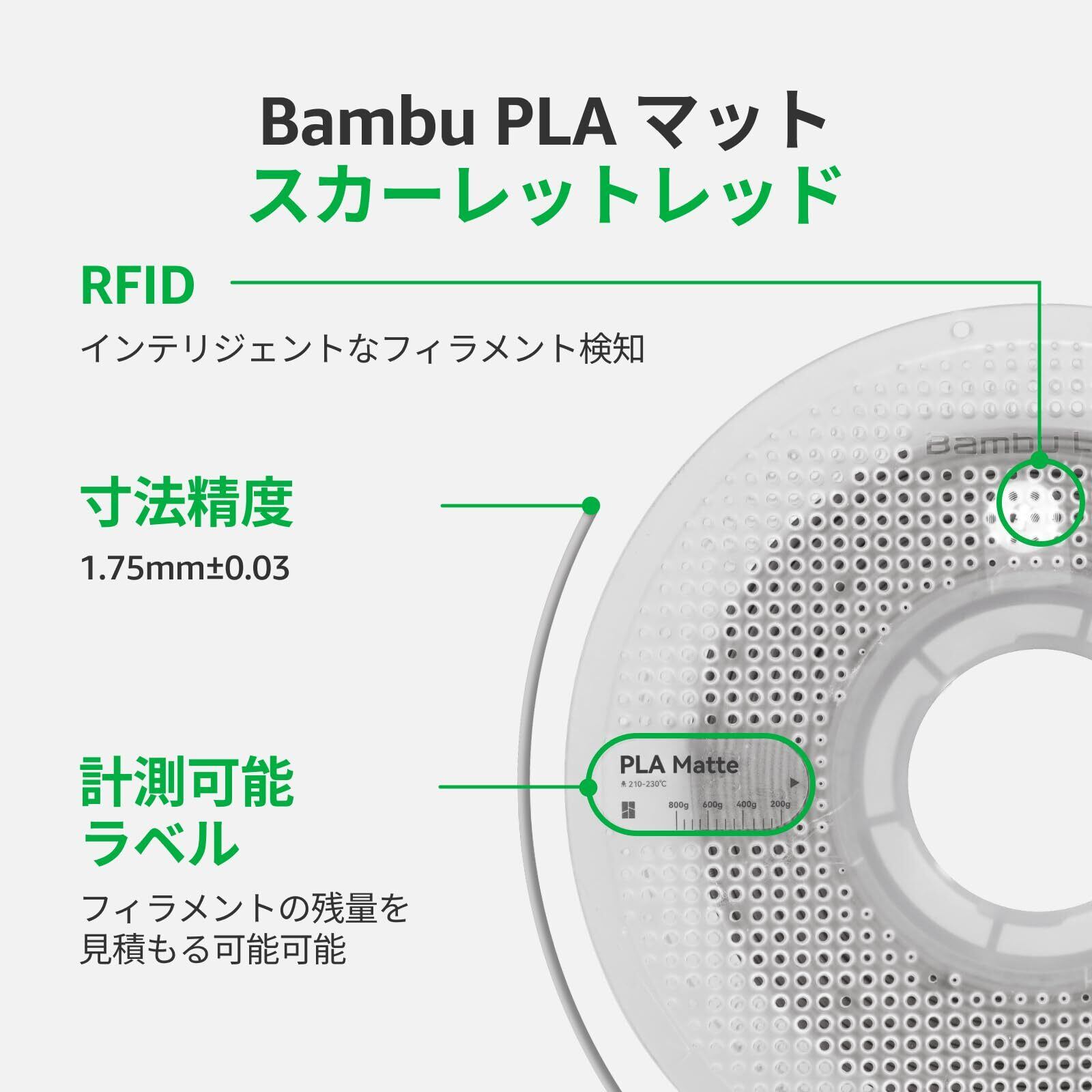 Bambu Lab マット PLA 3Dプリンター マット仕上がり PLA 3D プリントフィラメント 高精度 絡みが少ない 反り少ない 再利用可能なスプール付き AMSと使用可能 3Dプリント造形造形材料 1.75mm 1kg スカーレットレッド