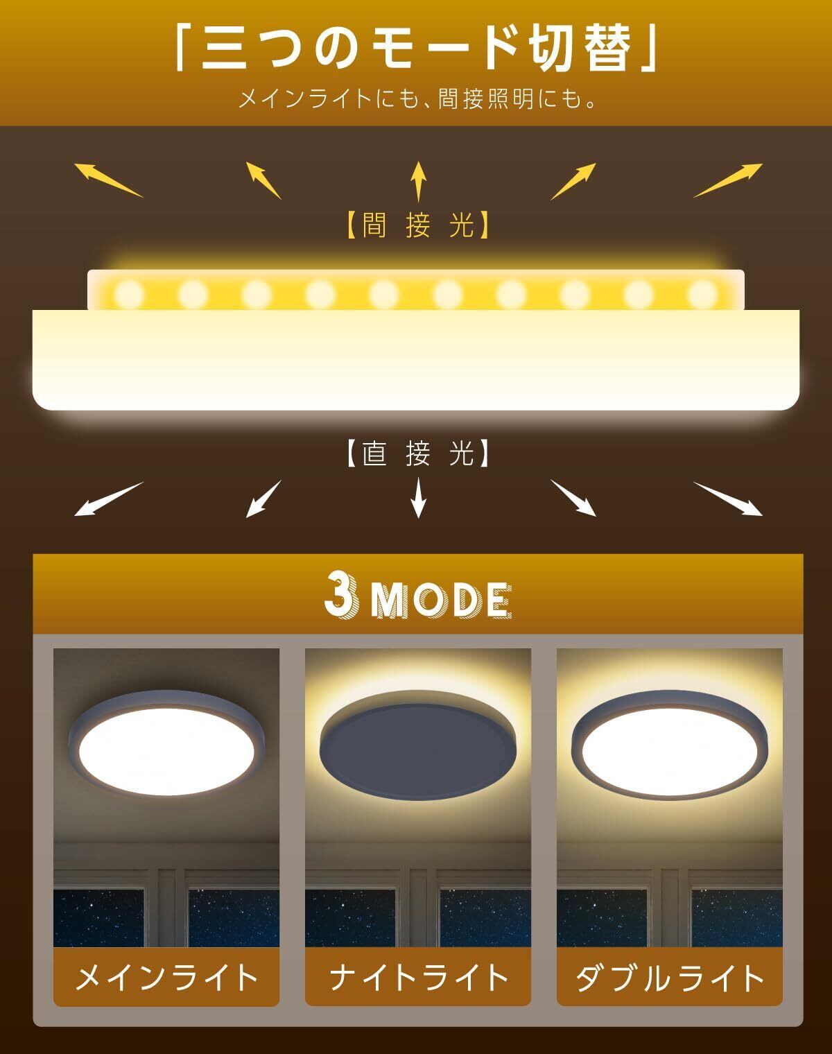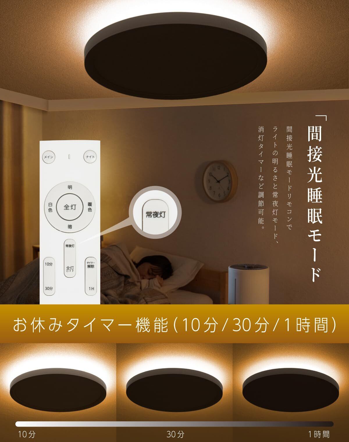 【多機能ナイトライト搭載LEDシーリングライト】このシーリングライトは、メインライト、ナイトライト、ダブルライトの3つの照明モードを備え、日常から特別なシーンまで様々なニーズに応えます。特に、日食を模した間接光のナイトライトモードは、部屋全体に温かみのあるオレンジ色の光を放ち、リラックスした雰囲気を作り出します。パーティーや映画鑑賞、静かな読書時間に最適な、ユニークな装飾効果と実用性を兼ね備えた照明器具です。