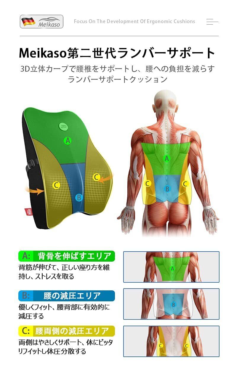 【Tarzan雑誌!紹介】Meikaso 腰クッション 低反発 ランバーサポート 人間工学の意匠特許オフィス 椅子 背もたれ 車用 腰枕 SGS認証/100D高密度クリア 取付バンド調節可能 洗える 着座 車/自宅/オフィス/プレゼント用 クッション母の日 父の日 敬老の日 (ブラック)