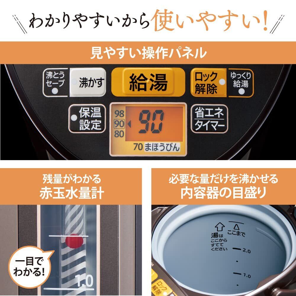 象印マホービン 電気ポット 2.2L 優湯生 省エネタイプ VE電気まほうびん 5段階温度設定 ブラウン CV-GA22-TA