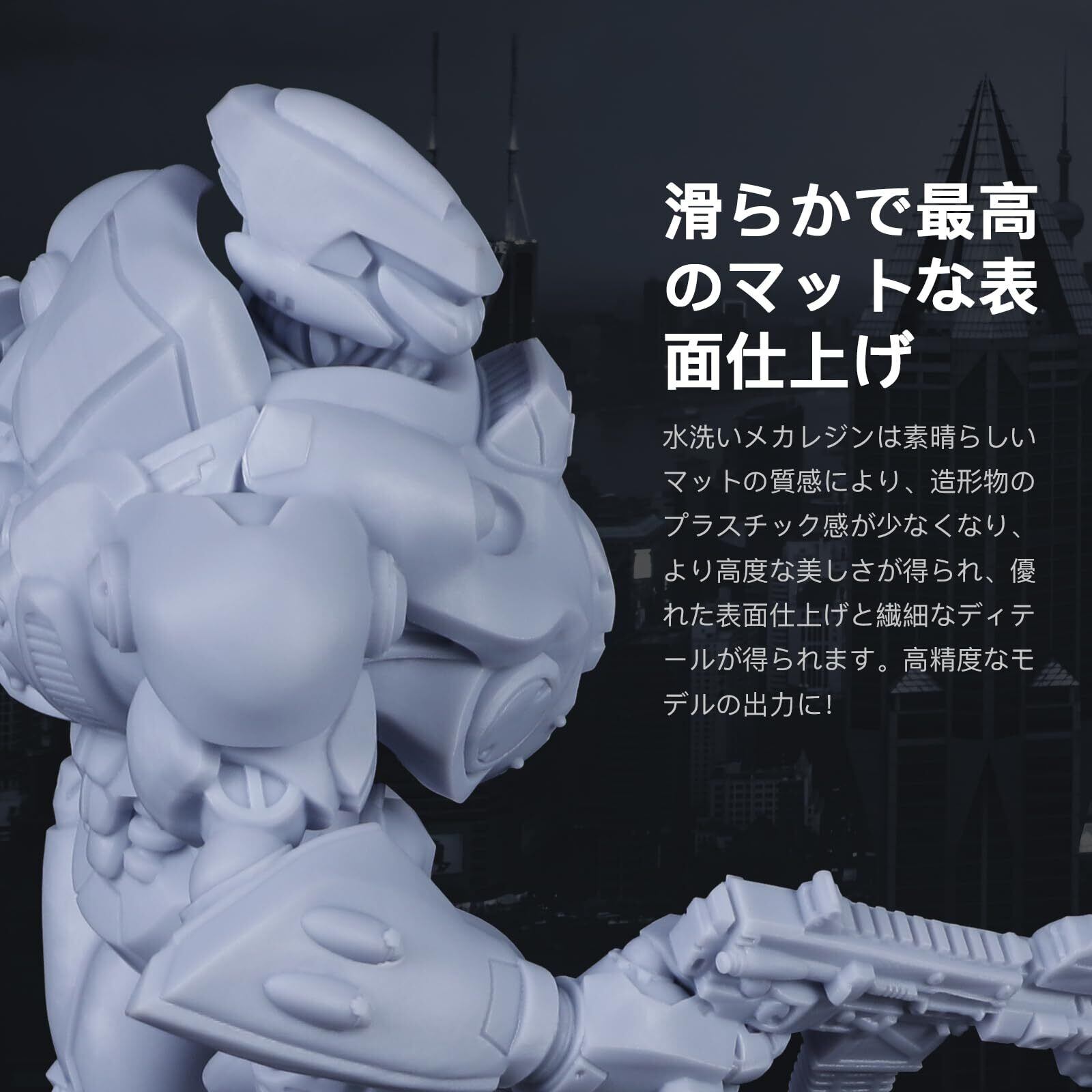 【水洗い可能&高精度&マットな質感】水洗いが出来るレジンで、面倒なIPA洗浄不要、環境にもお財布にも優しい!コスト削減で効率アップ。非常に作業が楽です。ひび割れが起きづらく、精度もしっかりでてベタつかない。また、素晴らしいマットの質感により、造形物のプラスチック感が少なくなり、より高度な美しさが得られ、優れた表面仕上げと繊細なディテールが得られます。