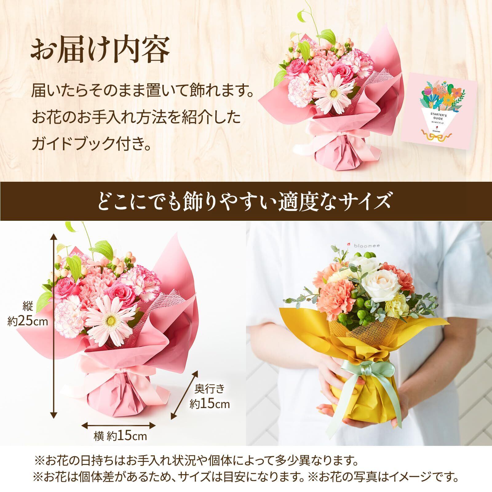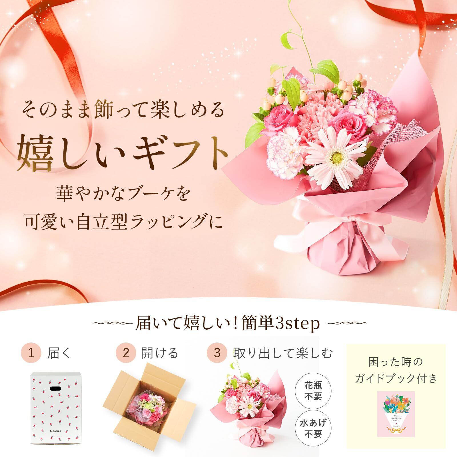 bloomee(ブルーミー) 【人気No.1】 そのまま飾れるブーケ ピンク 誕生日カード付き 花 花束 生花 アレンジメント ギフト プレゼント 花瓶不要 水いらず お祝い 誕生日 母の日 敬老の日 クリスマス 【販売事業者アワード2023受賞】