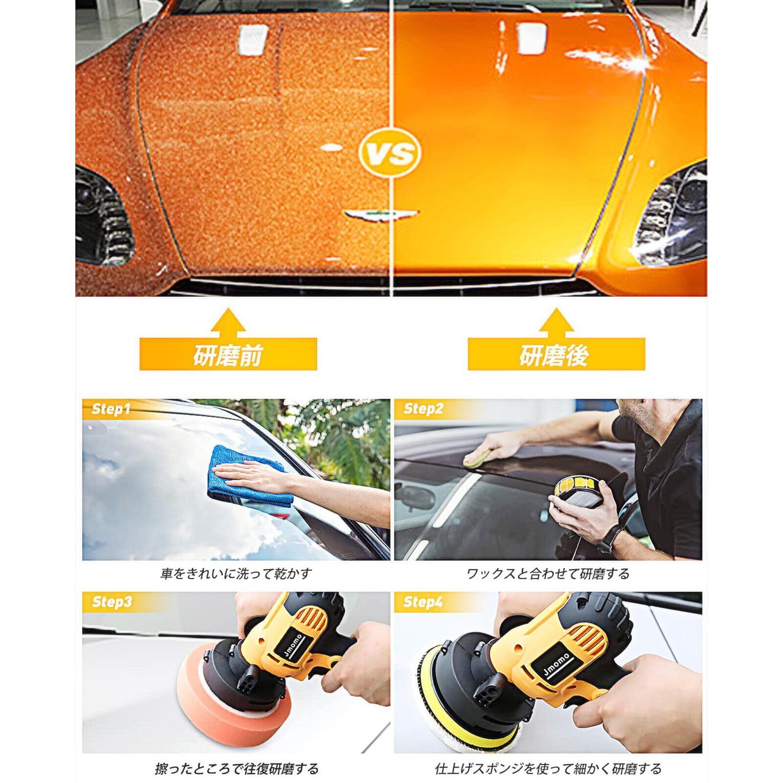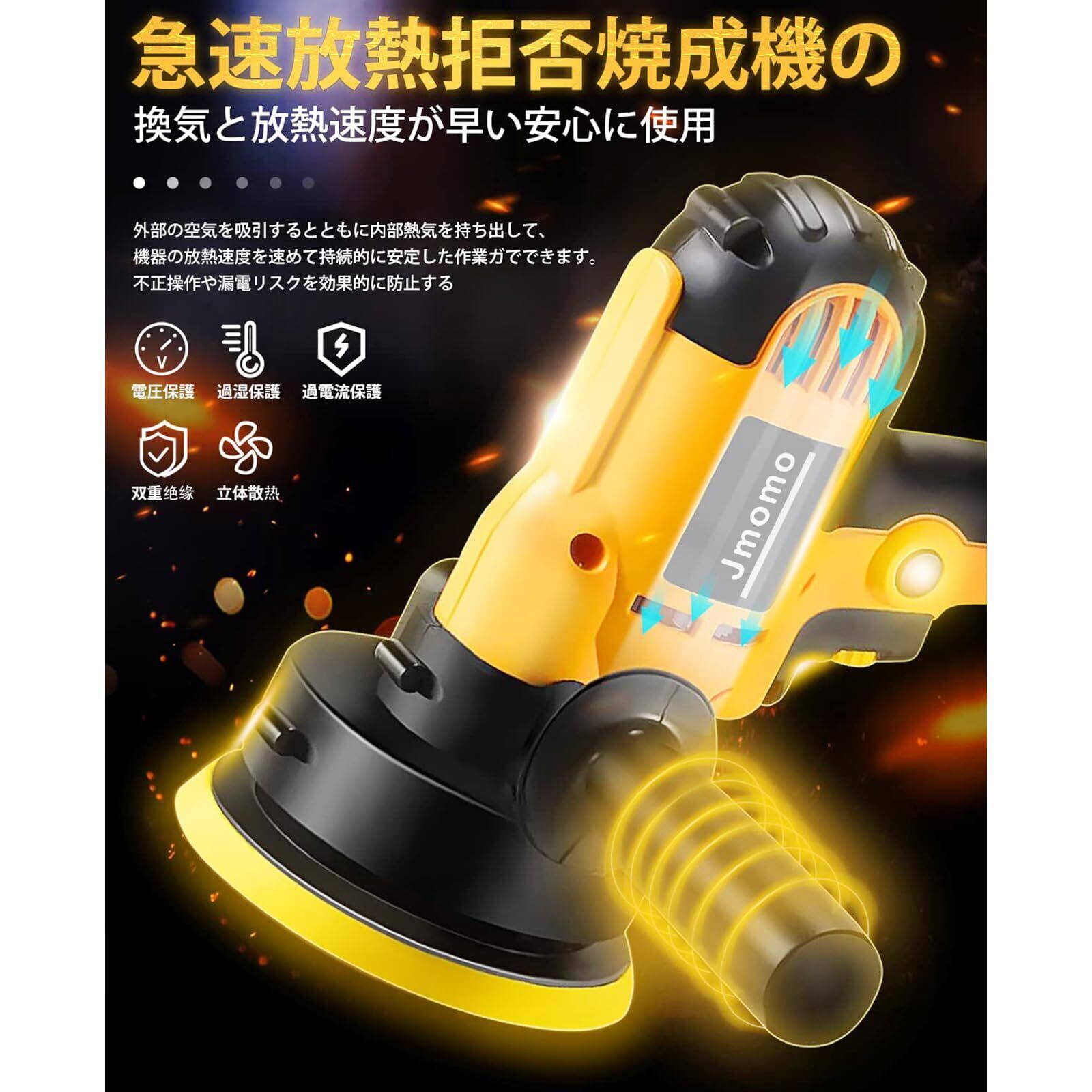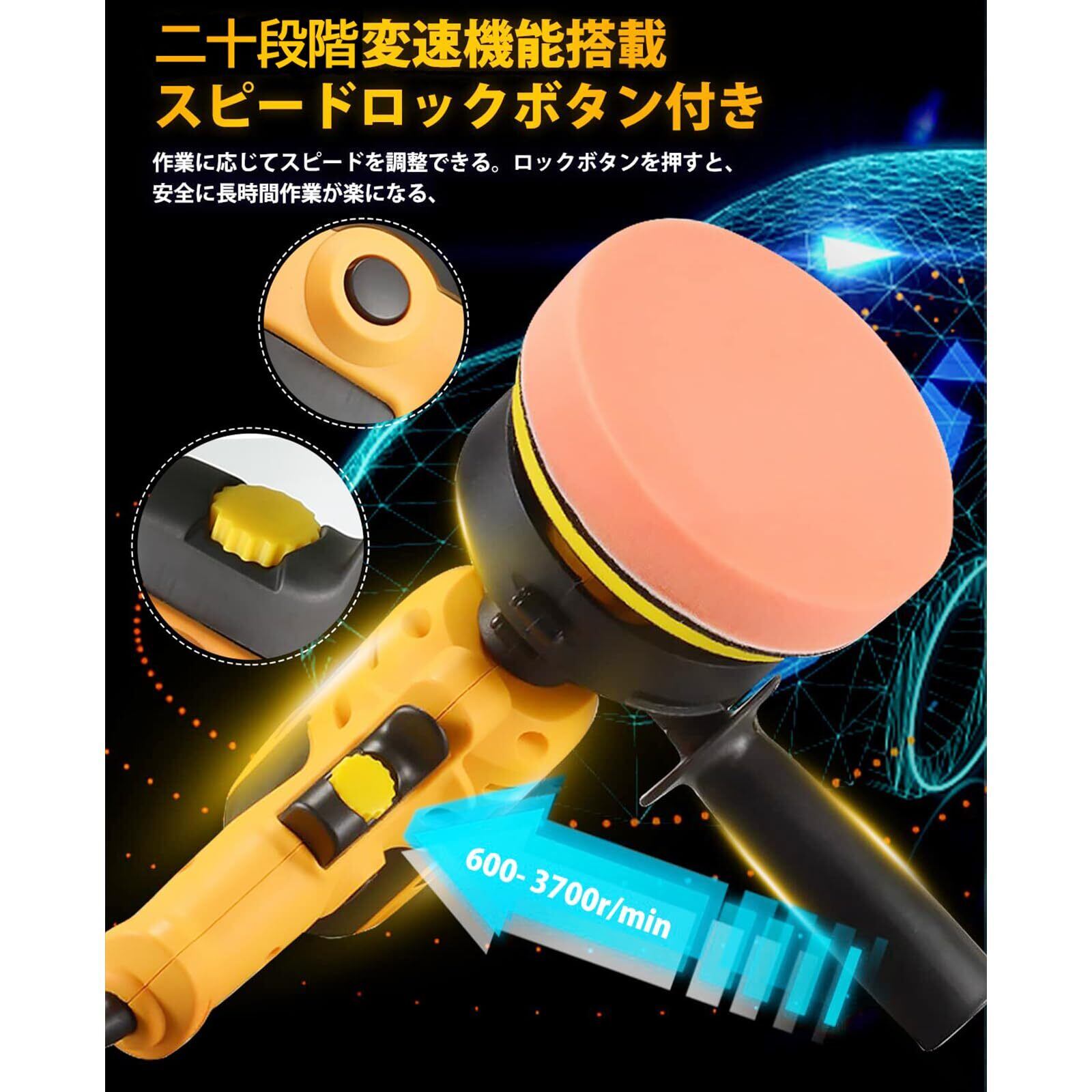 Jmomo ポリッシャー 電動ポリッシャー 車 125mm 二十段変速可能 強力モーター 研磨機 サンダポリシャー 軽量 車磨き ワックス作業 塗装面用 家庭用 艶出し 傷消し 研磨パッド付き スポンジセット付き (イエロー)