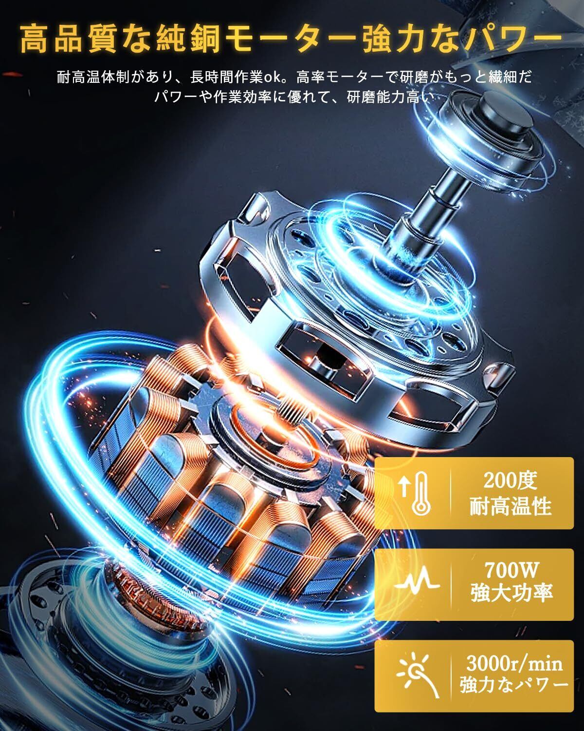 【パワフルで二十段階の変速】Jmomo ポリッシャーは 純銅モーターを採用し、強力で安定したパワーを提供します。さらに、二十段階の変速機能を備えており、具体的な表面材料や作業用途に応じて適切な速度を選択できます。低速時は低騒音で、高速時は効率的です。これは車両、木材製品、金属など、様々なポリッシュやワックス作業、金属製品のペイント除去や錆除去など、様々な要求に対応できます。