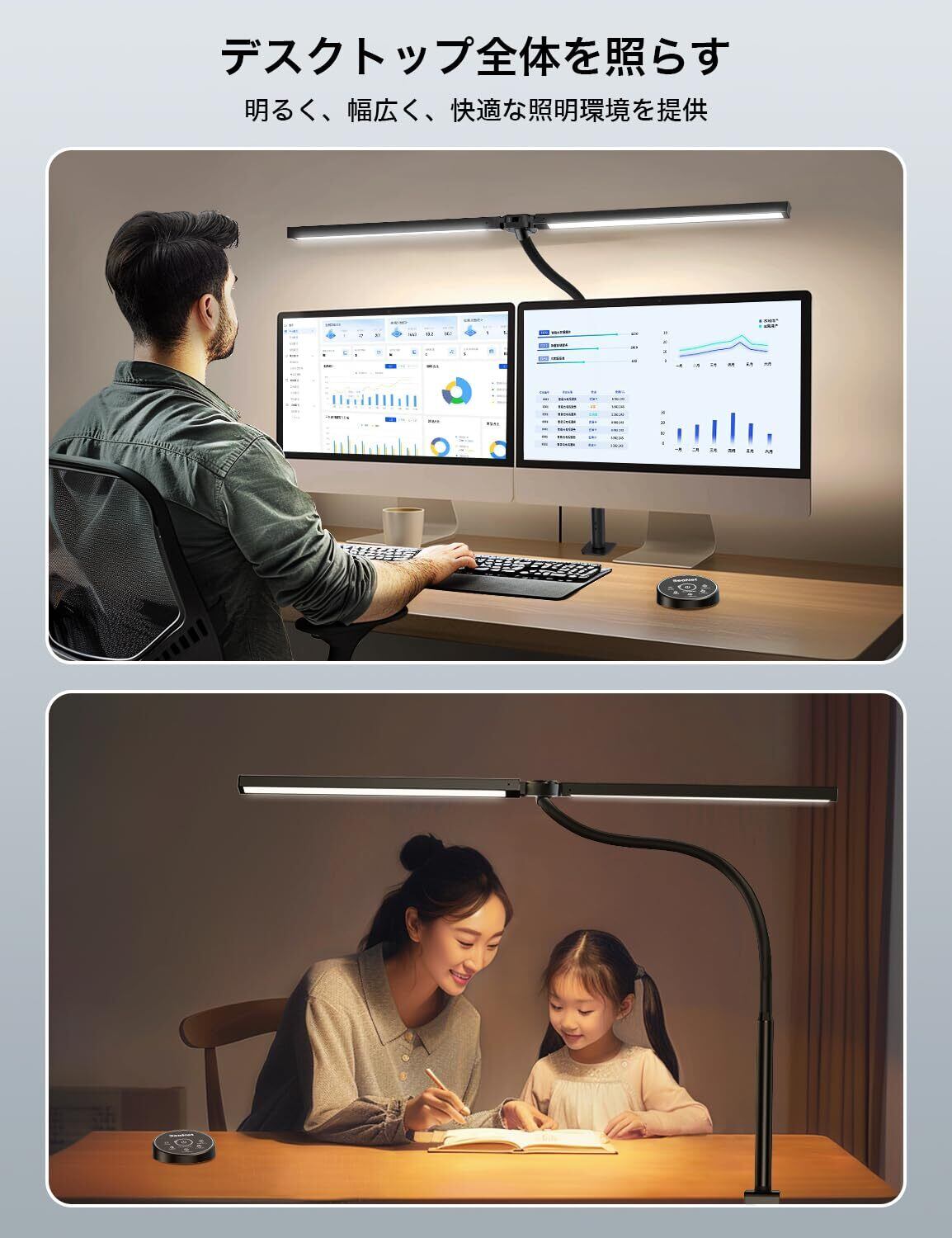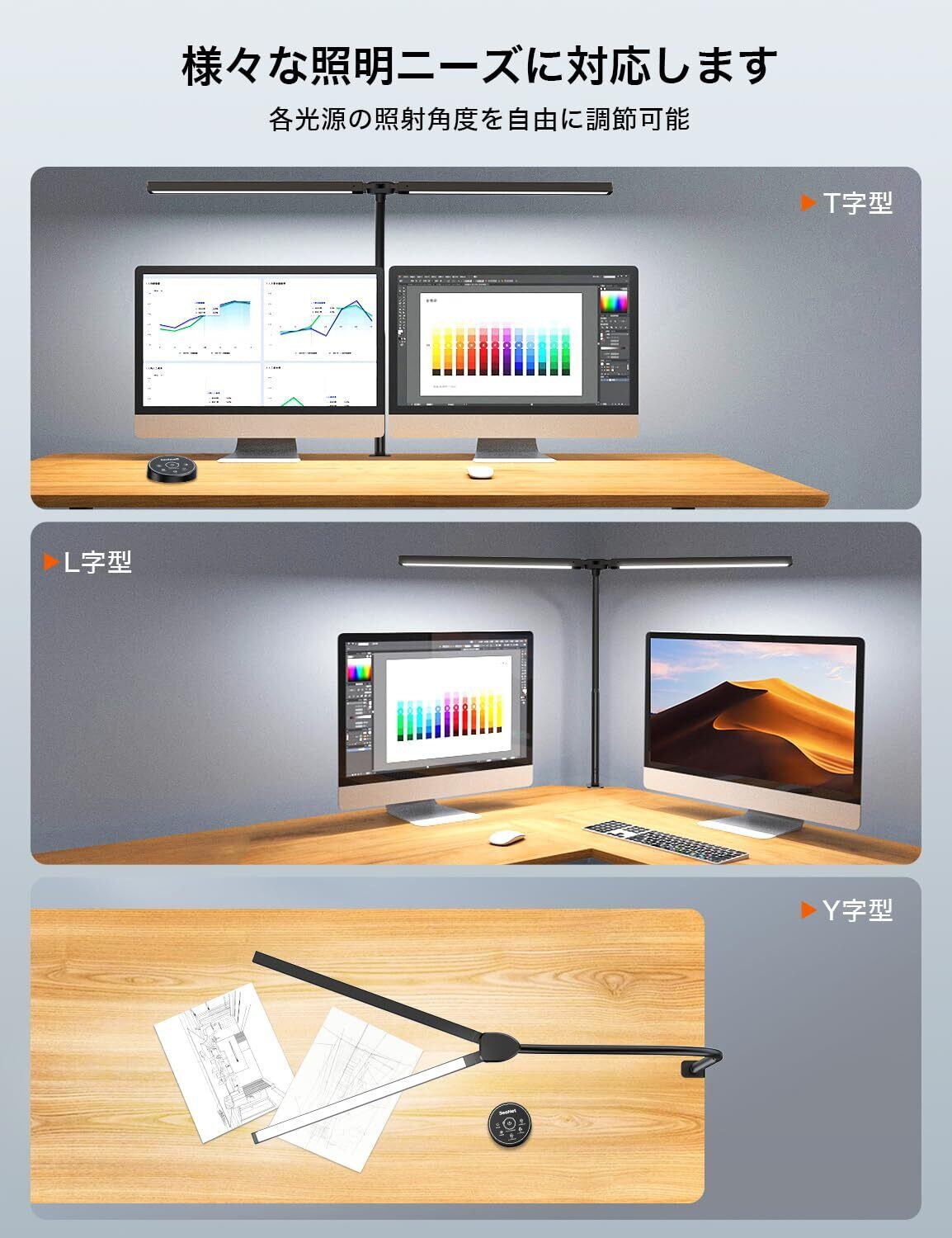 BeaNet デスクライト LED 「無線リモコン・ダブル光源・幅800mm・24W・2000Lx」 5段階調光調色 電気スタンド クランプ「PSE認証済」 幅広 スタンドライト 多角度調節 卓上ライト 目に優しい 読書/勉強/仕事 ブラック BNT-DEL07(T型 ・Pro版)