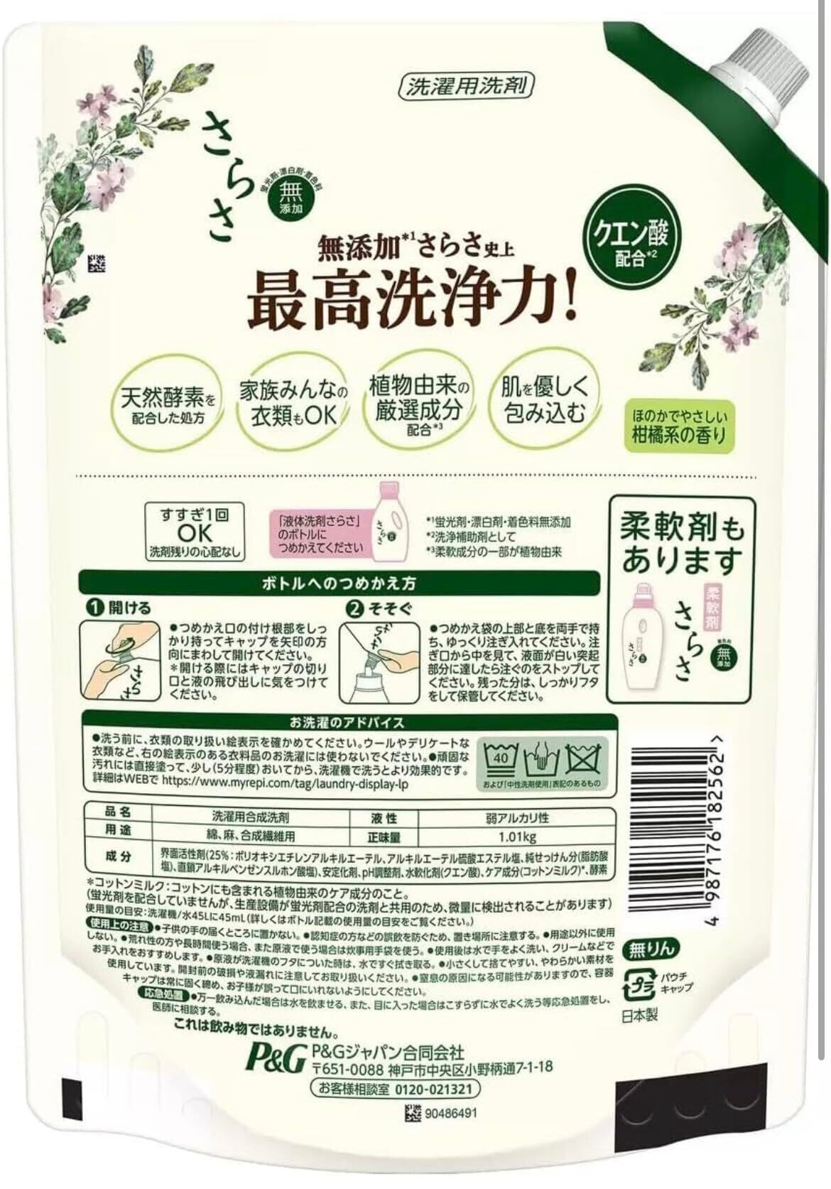 洗濯洗剤さらさは、無添加* さらさ史上最高洗浄力(蛍光剤、漂白剤、着色料無添加)