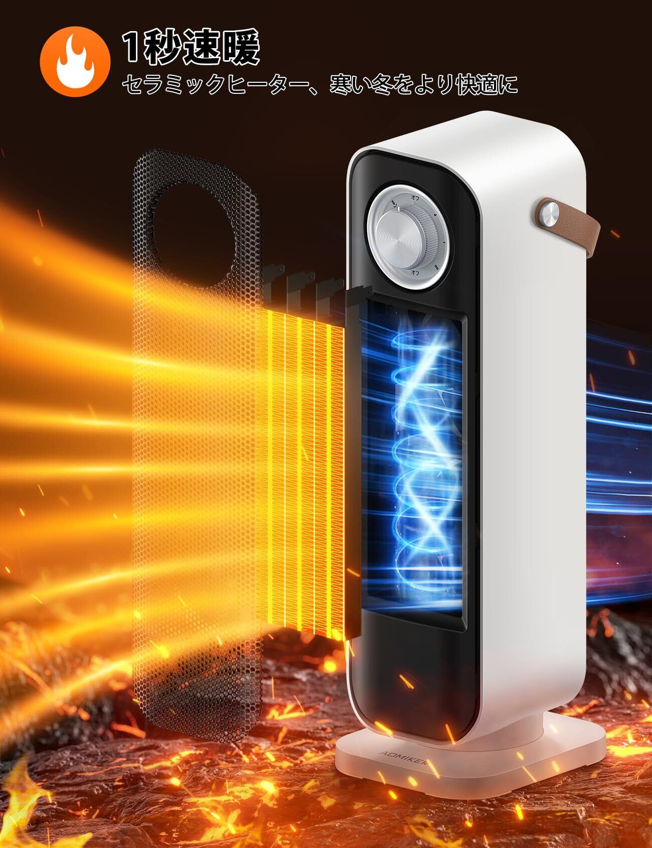 【2024冬新型】Aomiker セラミックヒーター 1秒速暖 : 1200W/800W 自動首振り 足元 電気ストーブ 小型 温風ヒーター 静音 電気ファンヒーター 暖房器具 コンパクト スリム 省エネ 3段階温度調整 操作簡単 大風量 転倒オフ 過熱保護 脱衣所 卓上 オフィス 寝室 トイレ 洗面所 プレゼント 日本語説明書あり