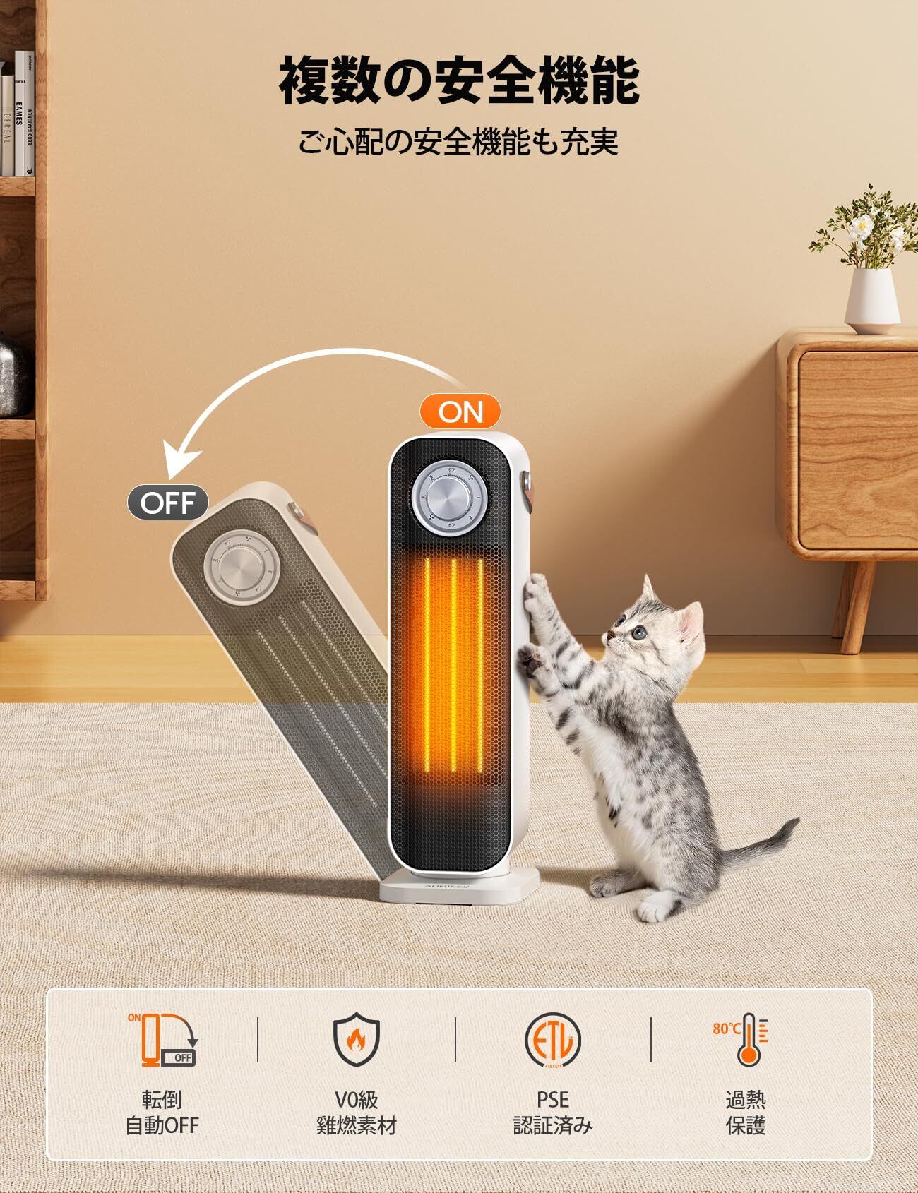 特徴 高速加熱, 軽量, 調整可能な温度, 首振り