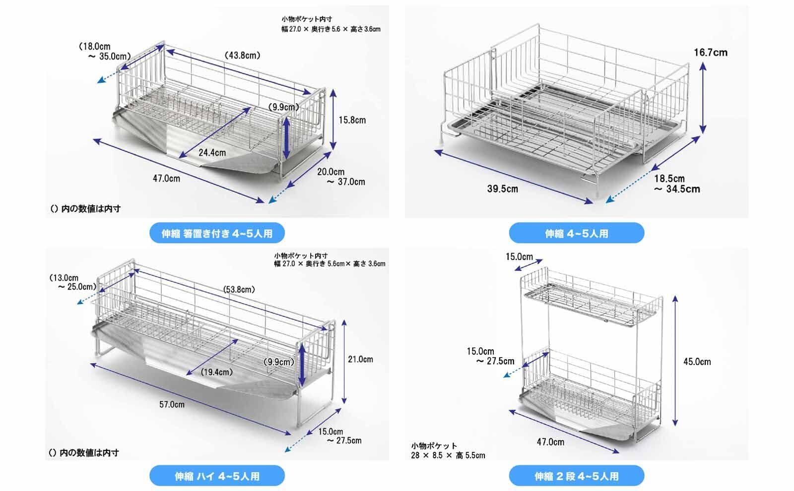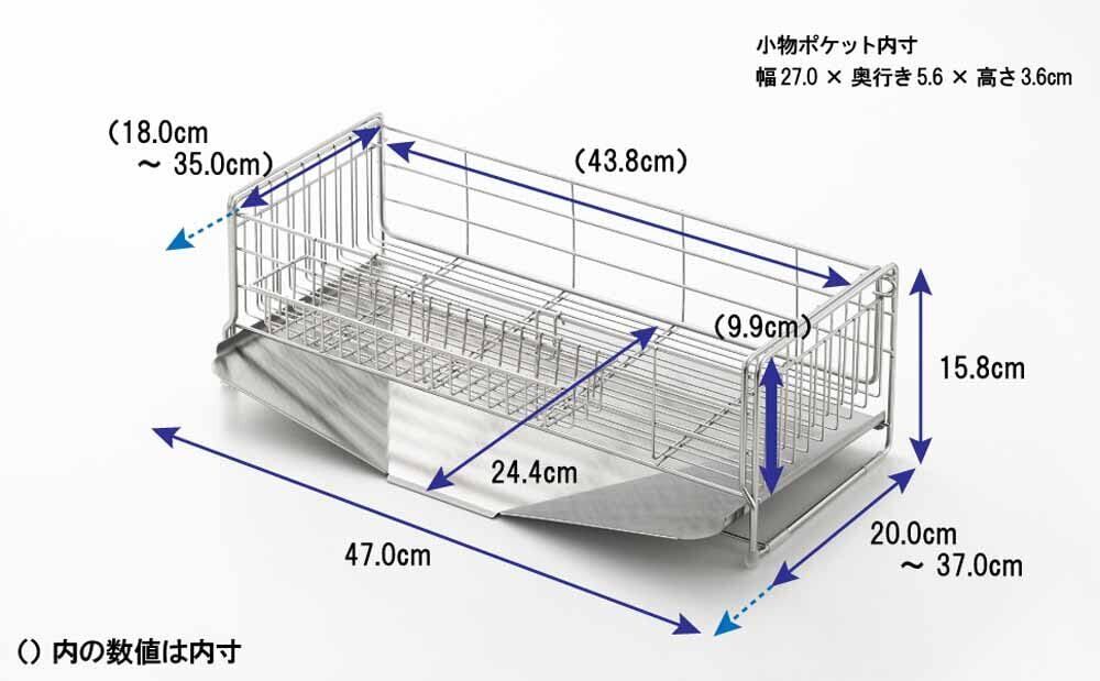 水切りバスケット内寸:18~35×43.8×9.9cm、重量:1.02kg