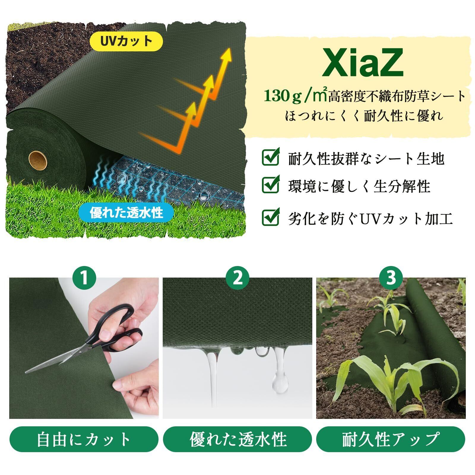 XiaZ 防草シート1×100M 130g/m2高耐久性不織布 雑草防止シート 固定ピン200本と黒丸200枚 高透水性 厚手除草シート 紫外線劣化防止 雑草対策 園芸用ぼうそうしーと 5年耐久 人工芝下 砂利下 家庭菜園 農業設置 緑色