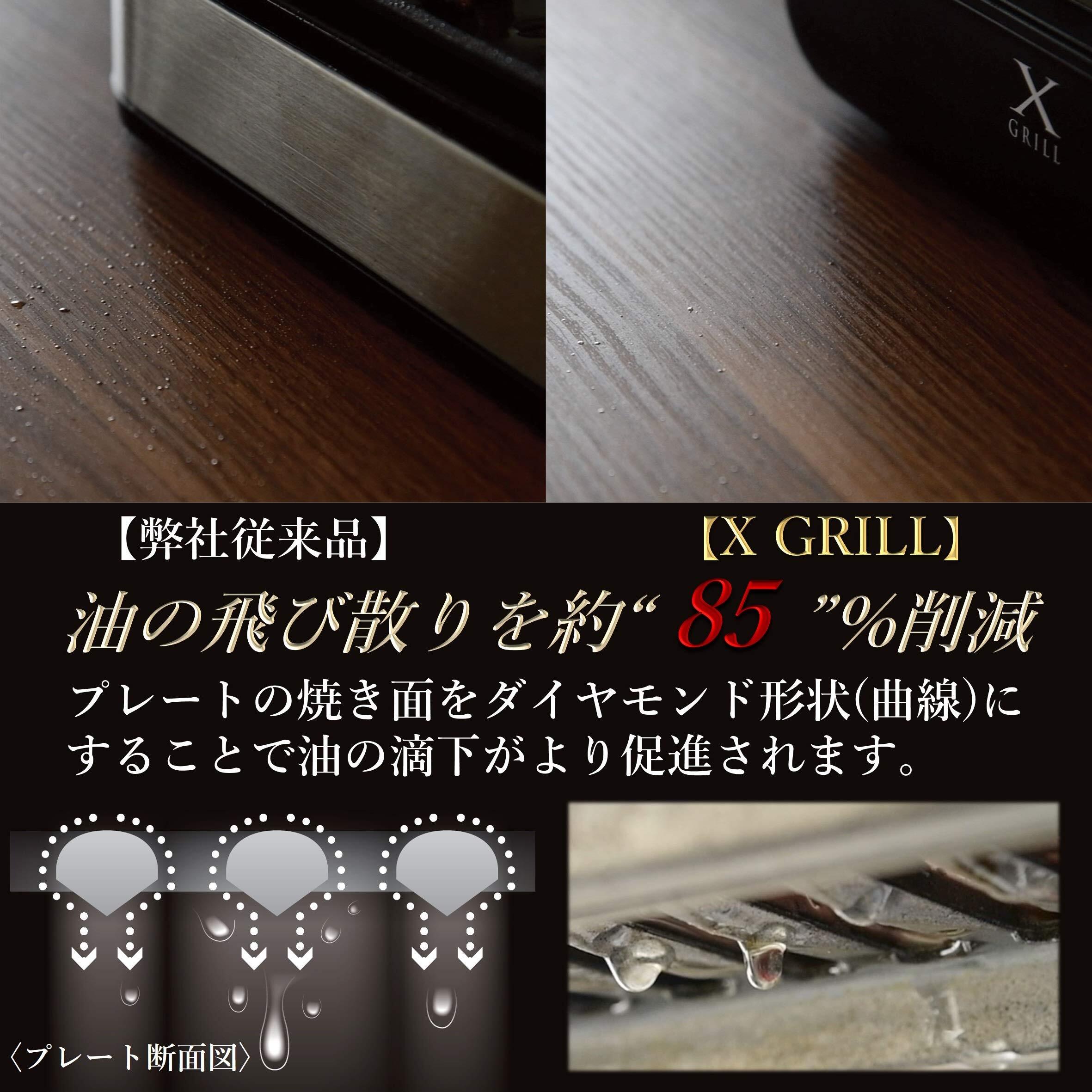 焼き面から下に流れた油は、X形状により、プレートから滴り落ちていきます。