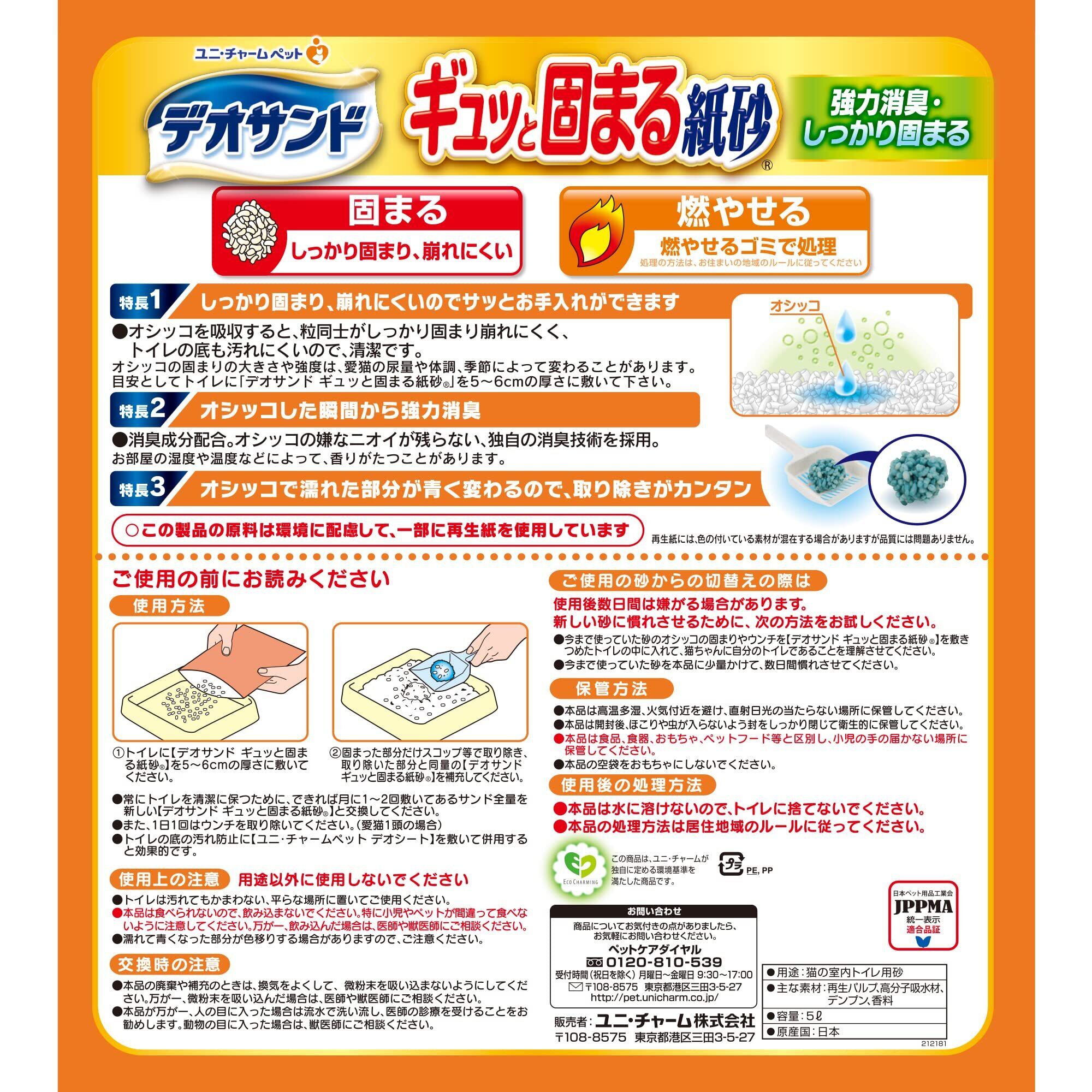 【しっかり固まる】デオサンド ギュッと固まる紙砂 30L(5L×6個) [猫砂 紙タイプ ]【強力消臭】