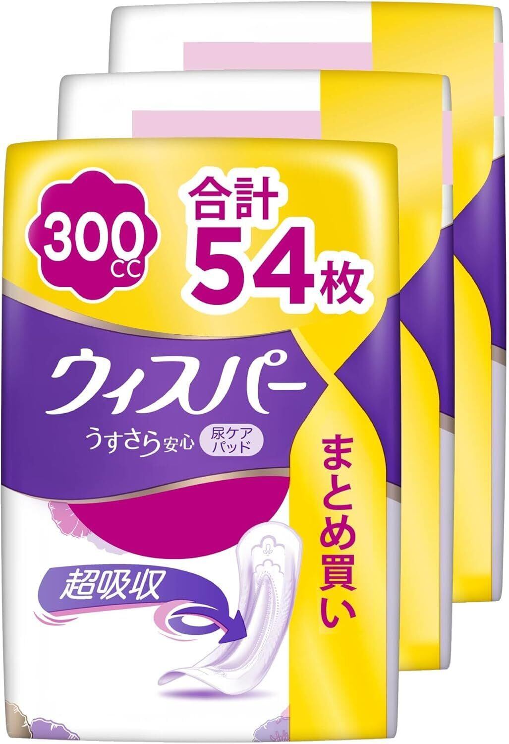 【ナプキン】[まとめ買い・大容量]ウィスパー うすさら安心 300cc 54枚 (18枚×3パック) (尿漏れパッド 尿とりパッド 女性用)【安心用】