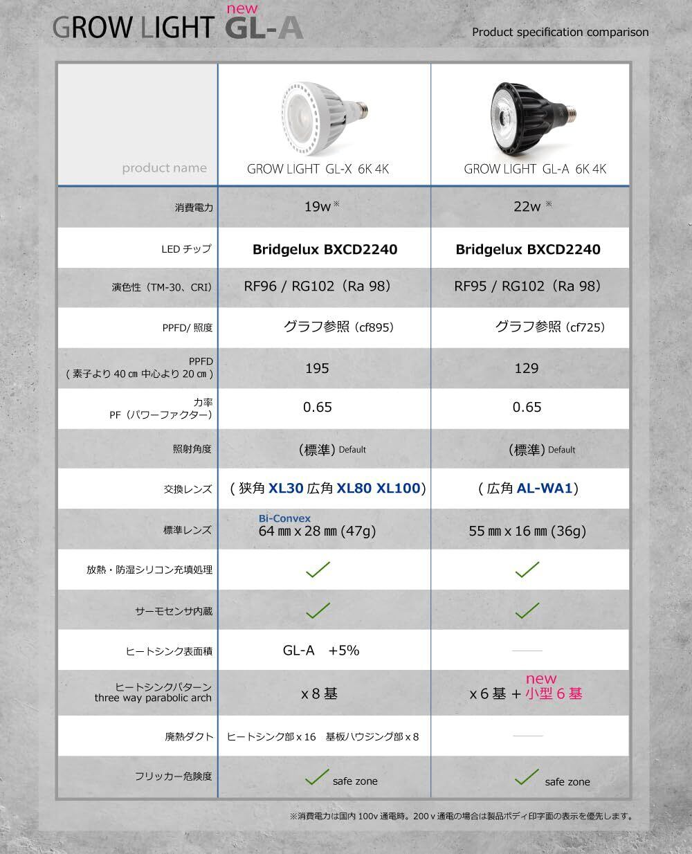 上位機種GL-Xに比べてLEDチップ、LEDドライバ、採用ボディにてコストカットを行った廉価版。