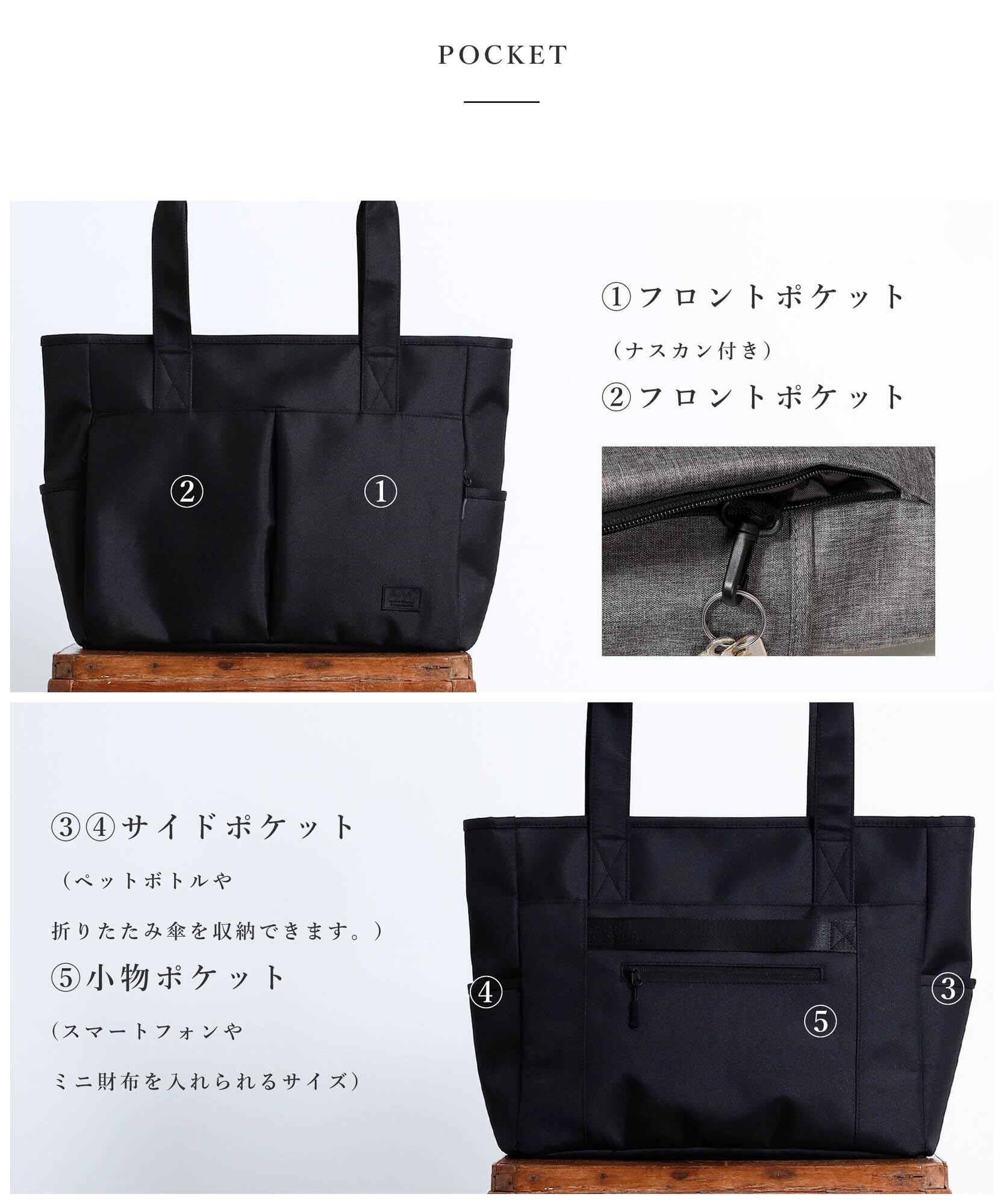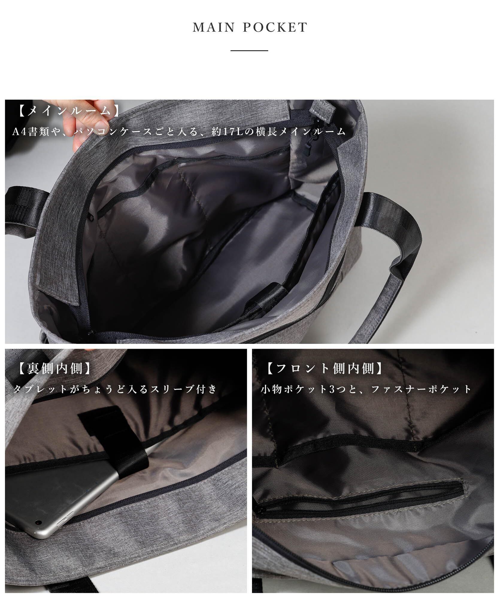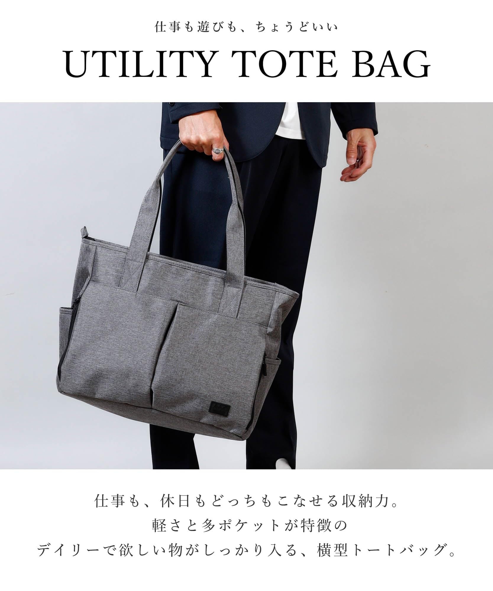 仕事も、休日もどっちもこなせる収納力。軽さと多ポケットが特徴の、デイリー で欲しい物がしっかり入る、 横長 トートバッグ 。