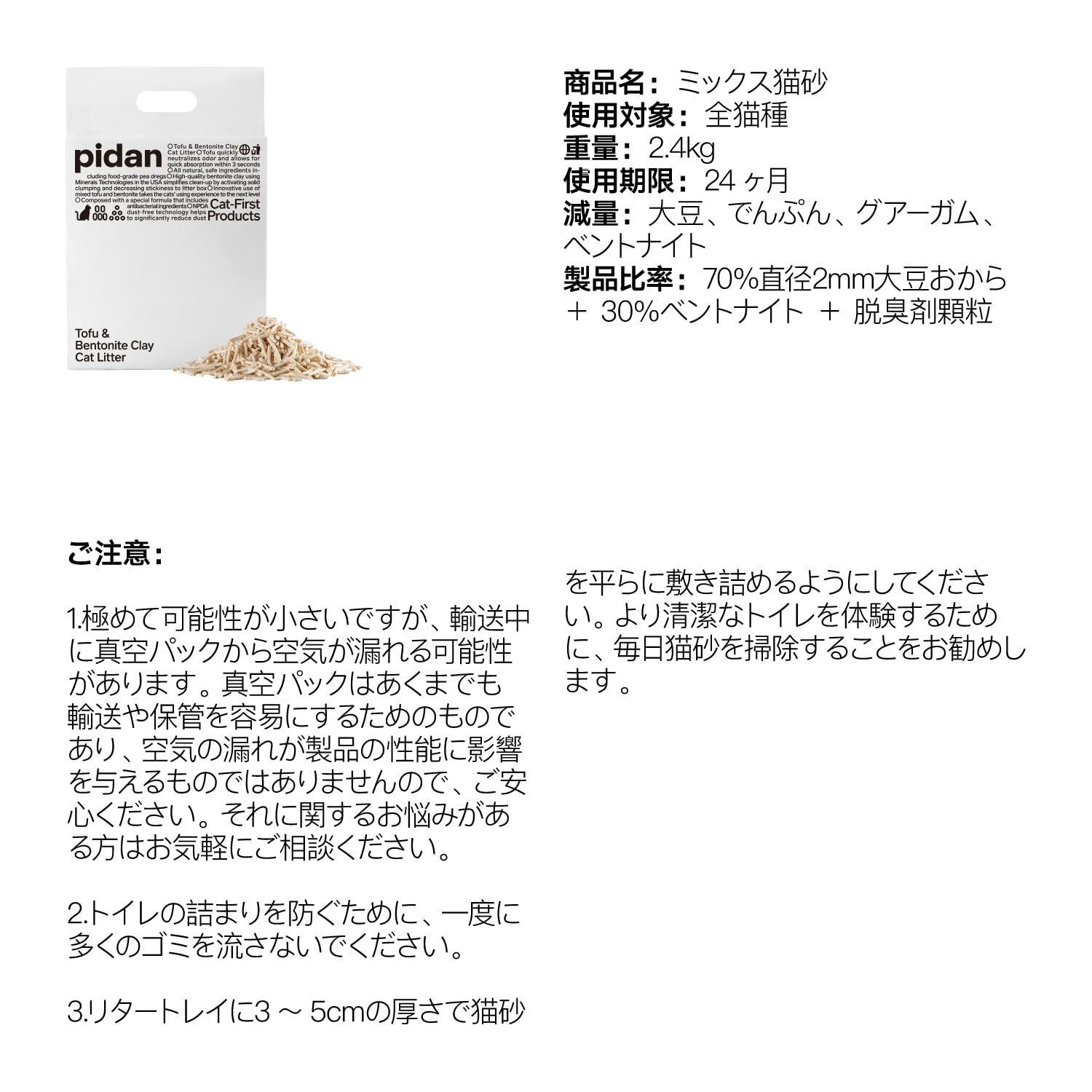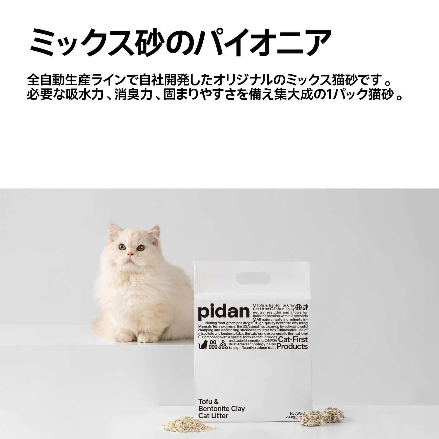 pidan 猫砂 おから 固まる ベントナイトとおから 混ぜる 脱臭 抗菌 真空パック 飛び散らない トイレに流れる 天然素材 臭みから解放 粉々になりにくい (2.4kg×4袋)