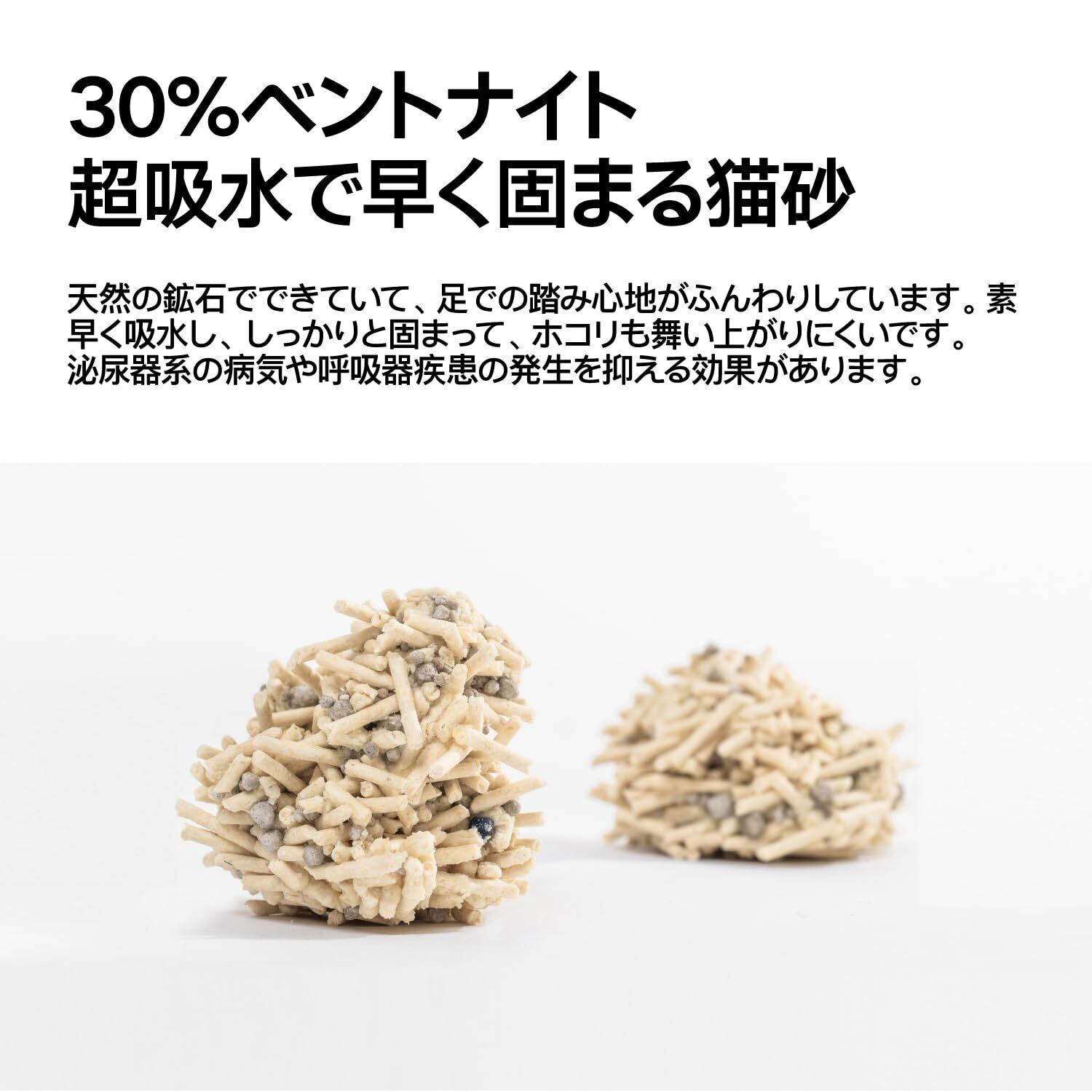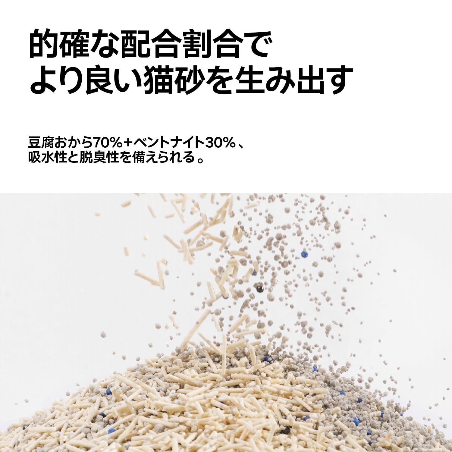 複数の猫砂をMIX】 消臭力の高いおからに加えて、ベントナイトも加わることでさらにパワーアップ大きさの異なる猫砂を配合することで隙間がなくなり、水分の吸収率が向上します