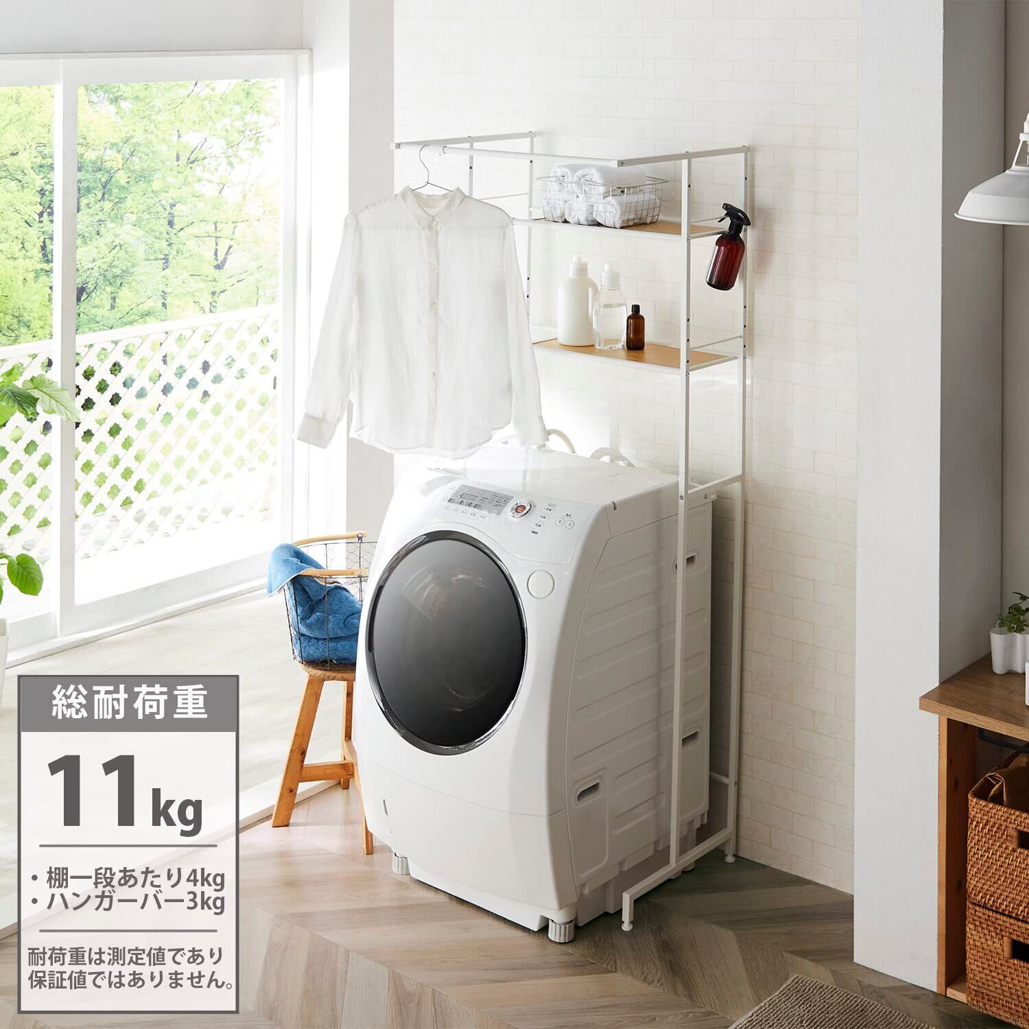 【耐荷重】11kg (棚一段あたり4kg・ハンガーバー3kg) 【本体重量】6.3kg 【カラー】マットホワイト