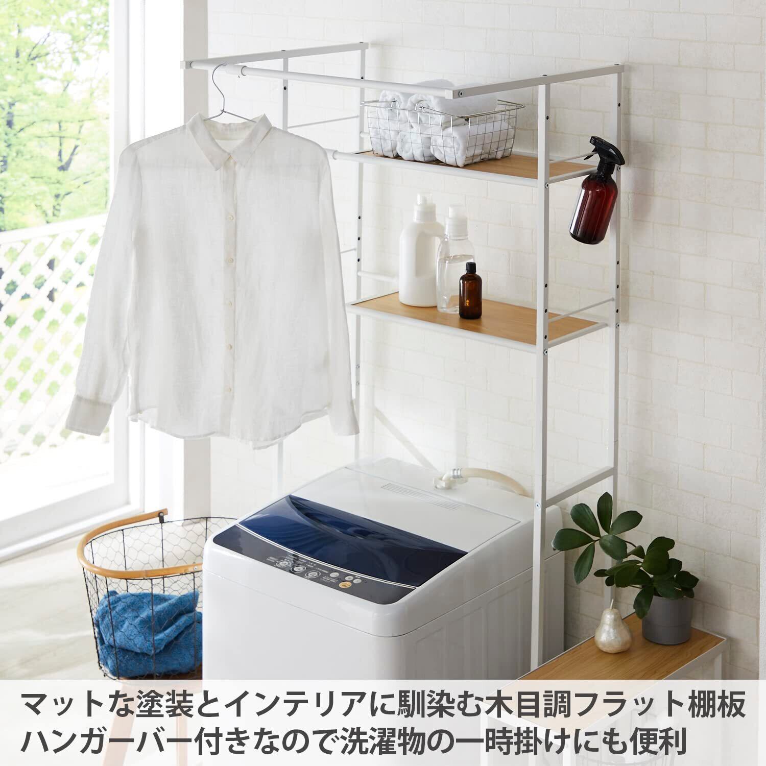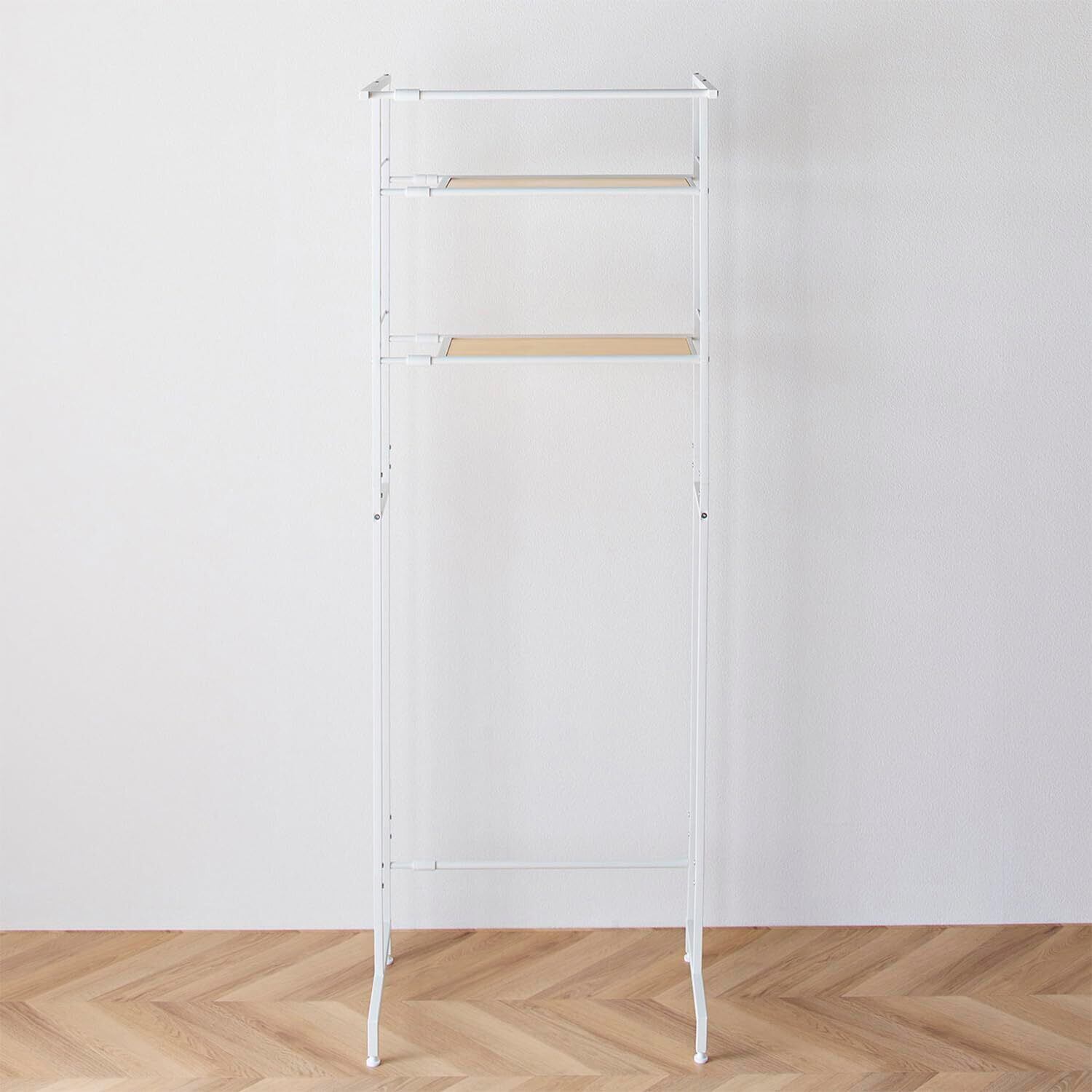 HEIAN SHINDO ランドリーラック 棚2段 ハンガーバー付き 横伸縮 縦型ドラム式両対応 角パイプ 木目マットホワイト 幅64~82×奥行53×高182cm HSR-5WH 平安伸銅工業
