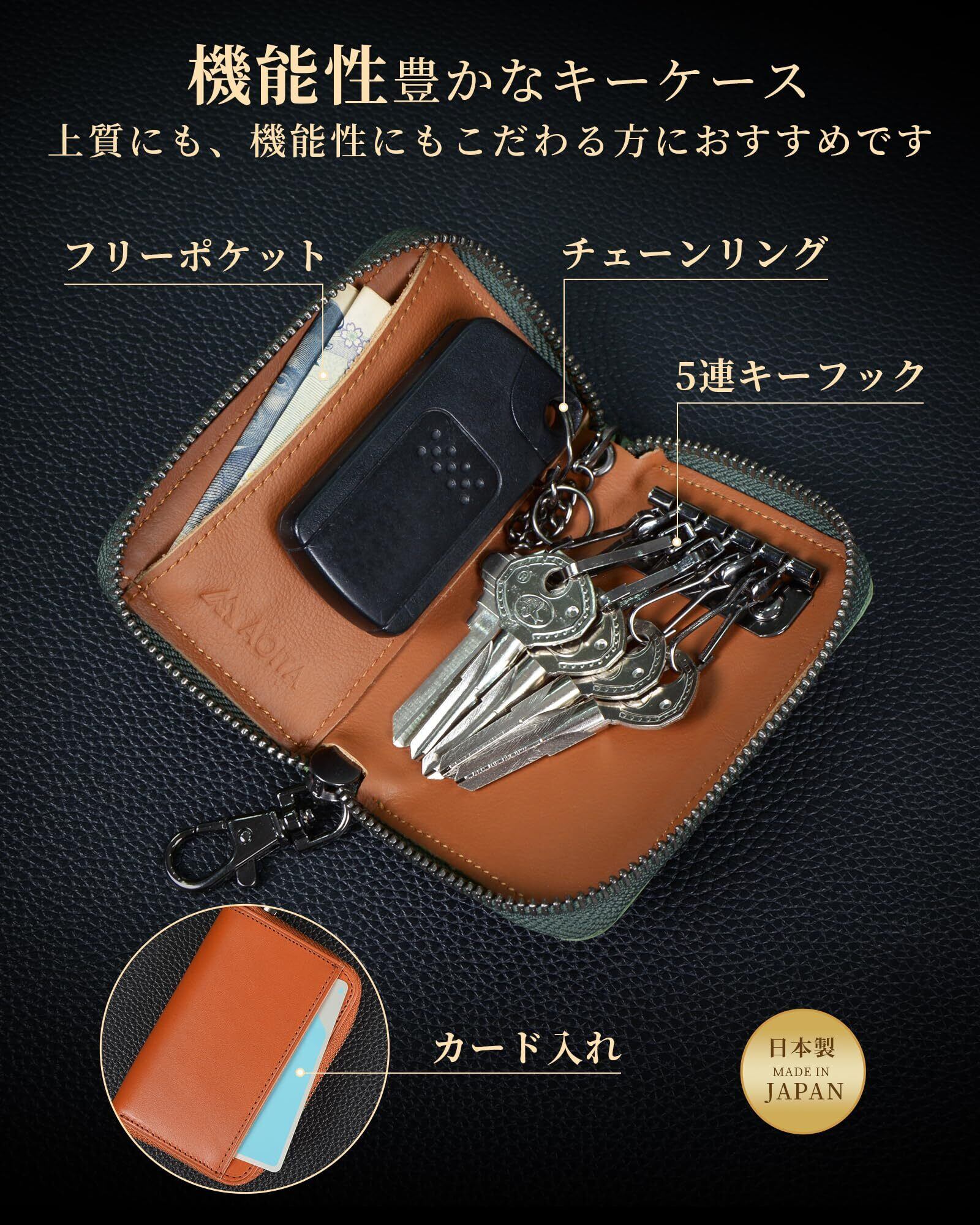 [Aoita] キーケース メンズ 栃木レザー 日本製 多機能 本革 5連フック YKKファスナー スマートキーケース 車 鍵 コンパクト カード入れ key case プレゼント