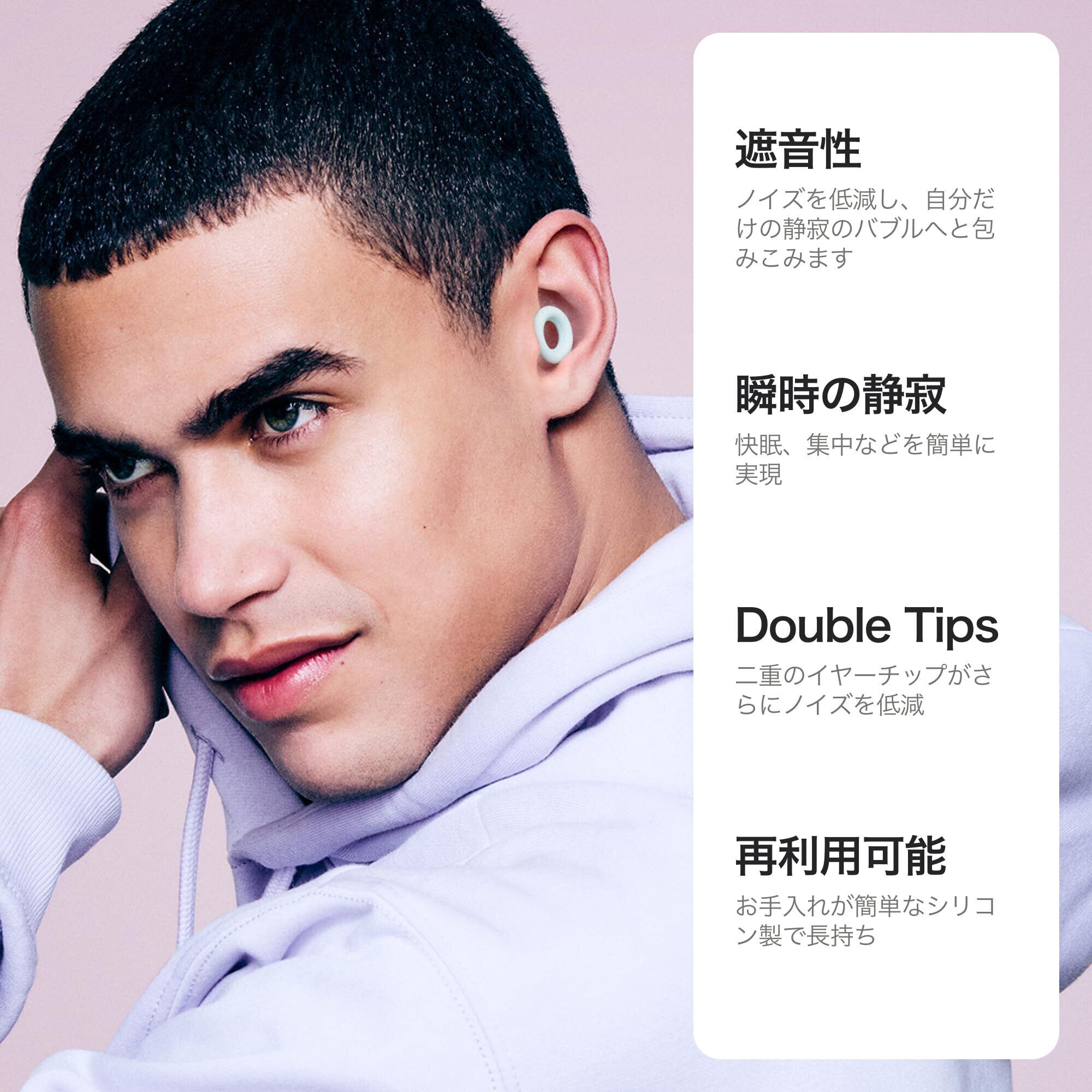 Loop Quiet 2 Plus 耳栓 Double Tips が付属した– 睡眠、集中、移動、騒音過敏に適した超快適かつ再利用可能な耳栓 | フレキシブルな聴覚保護具 | SNR値24dBのノイズリダクション に3dBのDouble Tipsが付属