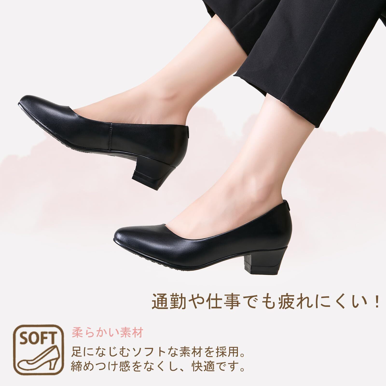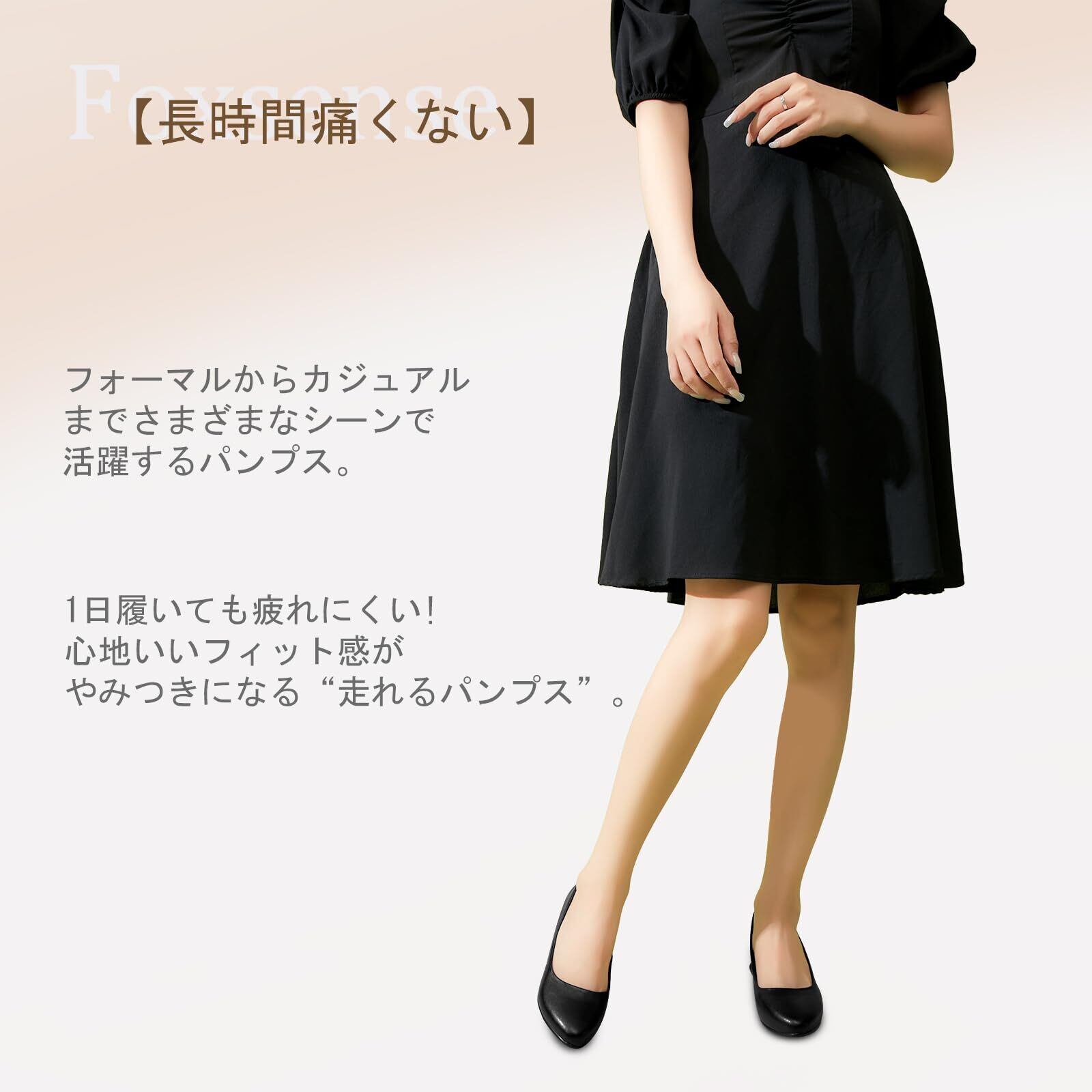 [フォクスセンス] パンプス レディース 本革 スクエアトゥ ヒール3.5cm 足囲3E 痛くない 柔らか 通勤 冠婚葬祭 就活 ビジネス リクルート 仕事