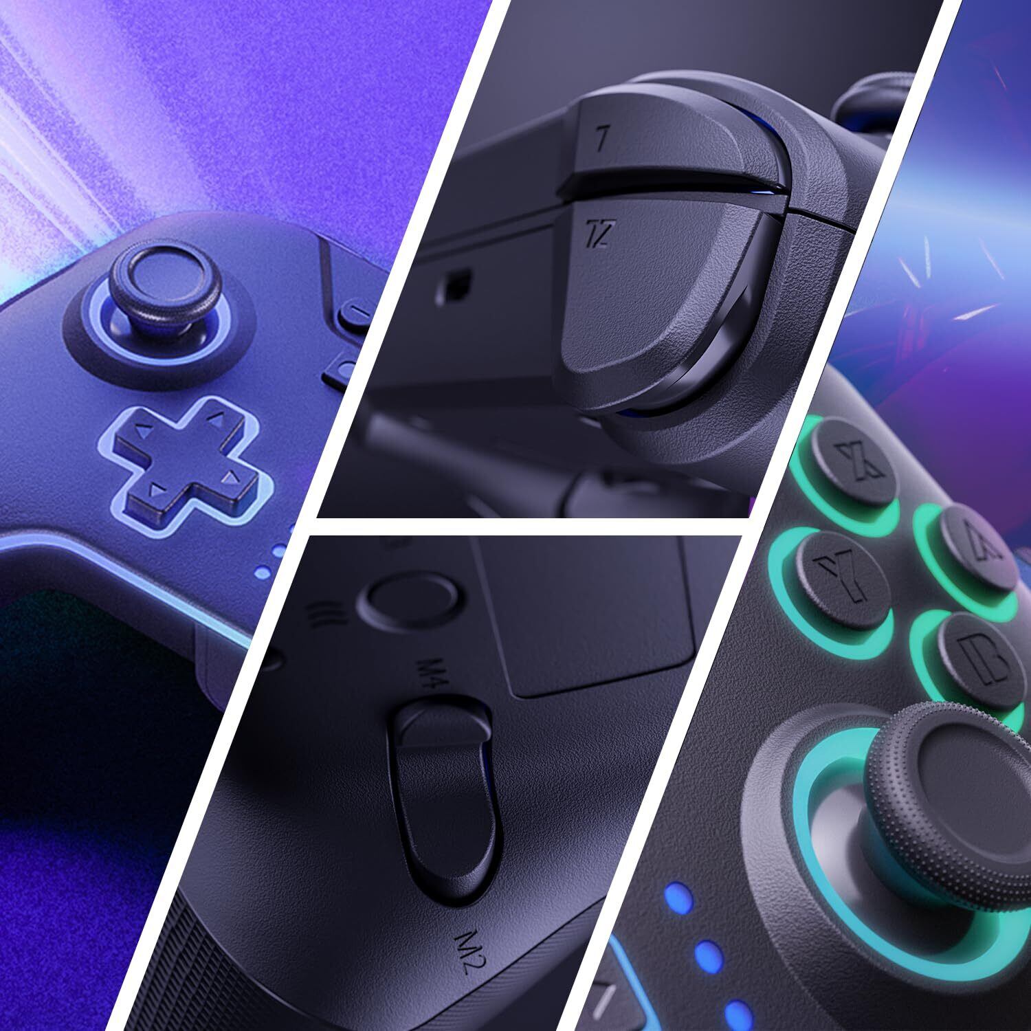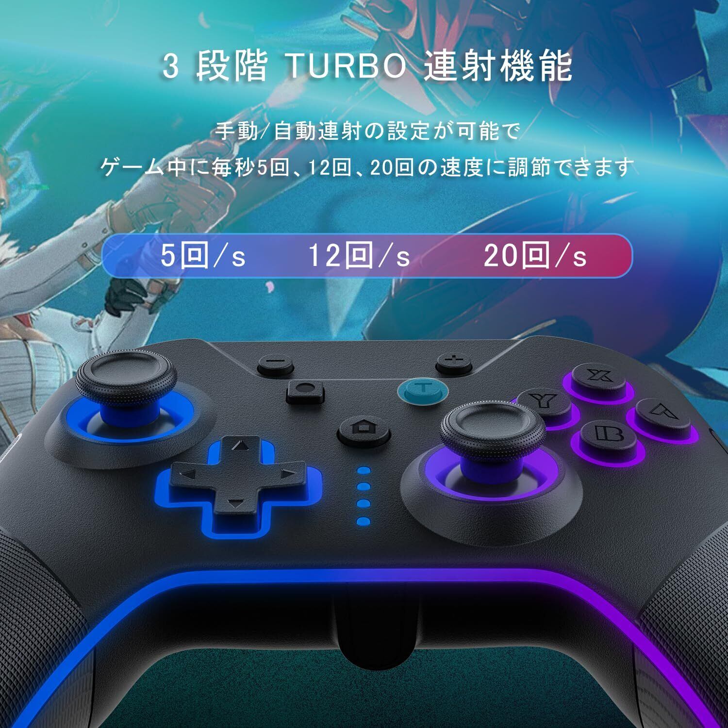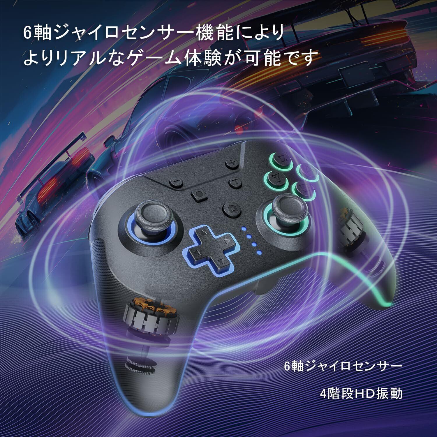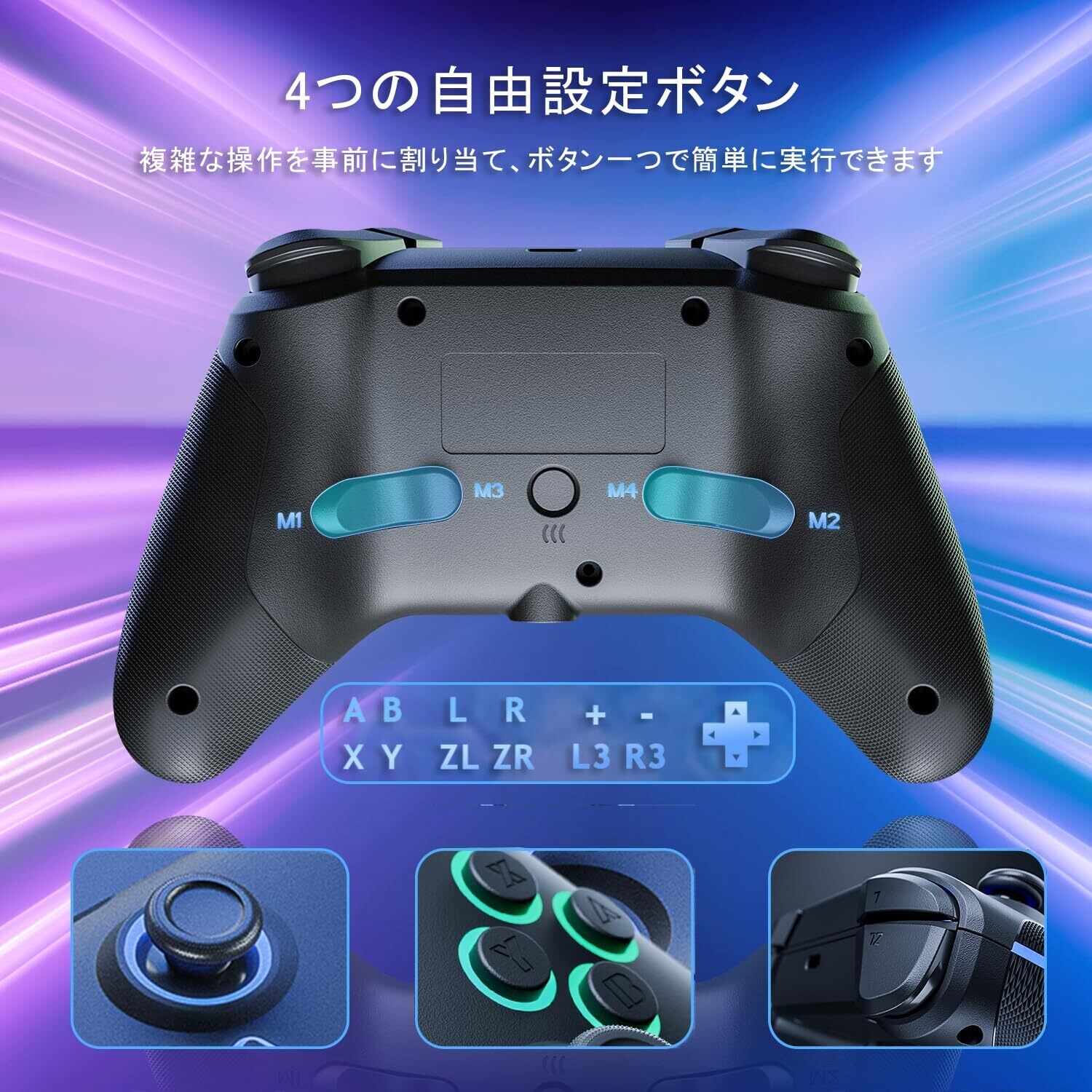 Switch コントローラー 4つの呼吸ライトモード 自動連射/連射ホールド 4段階振動調整 6軸ジャイロセンサ マクロ機能 背面ボタン4つ付 1000mAhバッテリー長時間使用 Bluetooth5.2接続 Switch1/Switch2/PC(有線)/Android/IOSに対応 PeriphX スイッチ プロコン 全機能搭載 極上の手触り ホールセンサー