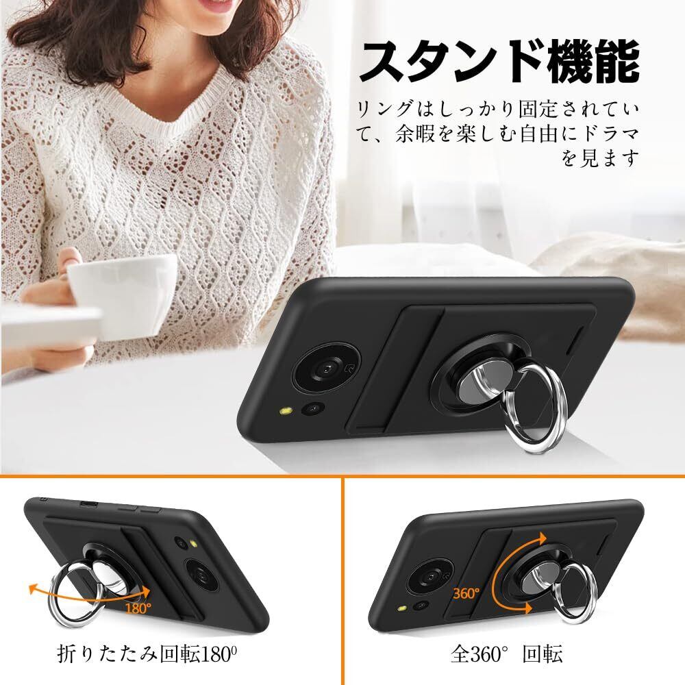 Sitikai For AQUOS sense8 ケース リング付き シリコン カード収納 アクオスセンス8 スマホケース スタンド機能 360°回転リング 耐久 滑り止め 黑