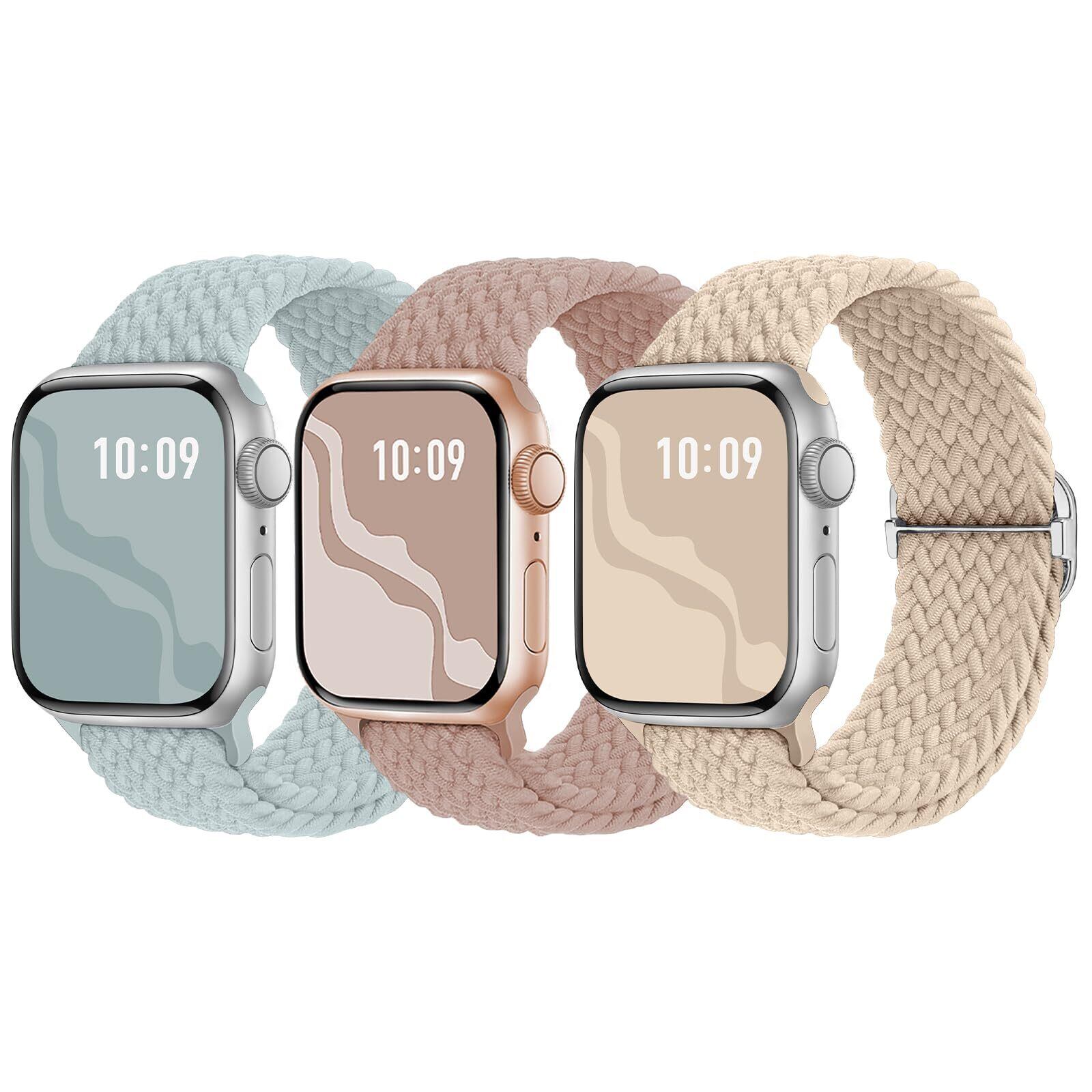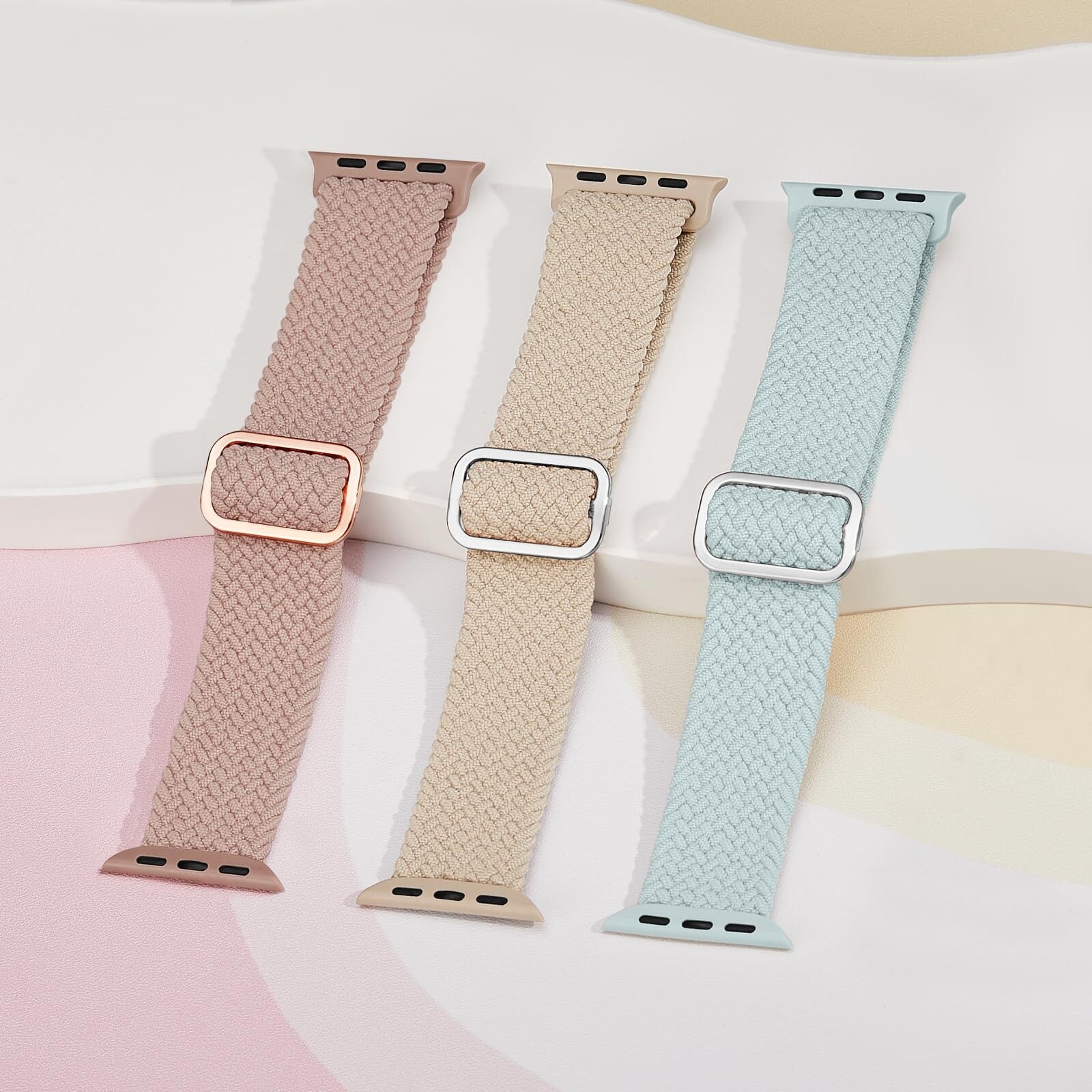 【3枚入り】Suitisbest コンパチブル アップルウォッチ バンド 42mm 41mm 40mm 38mm 編み込み Apple Watch ナイロンバンド 伸縮性 アップルウォッチ スポーツベルト Series 10 9 8 7 6 5 4 3 2 1 SEに対応 長さ無段階調整 柔軟 通気 防汗 ダークピンク ベージュ アクアブルー