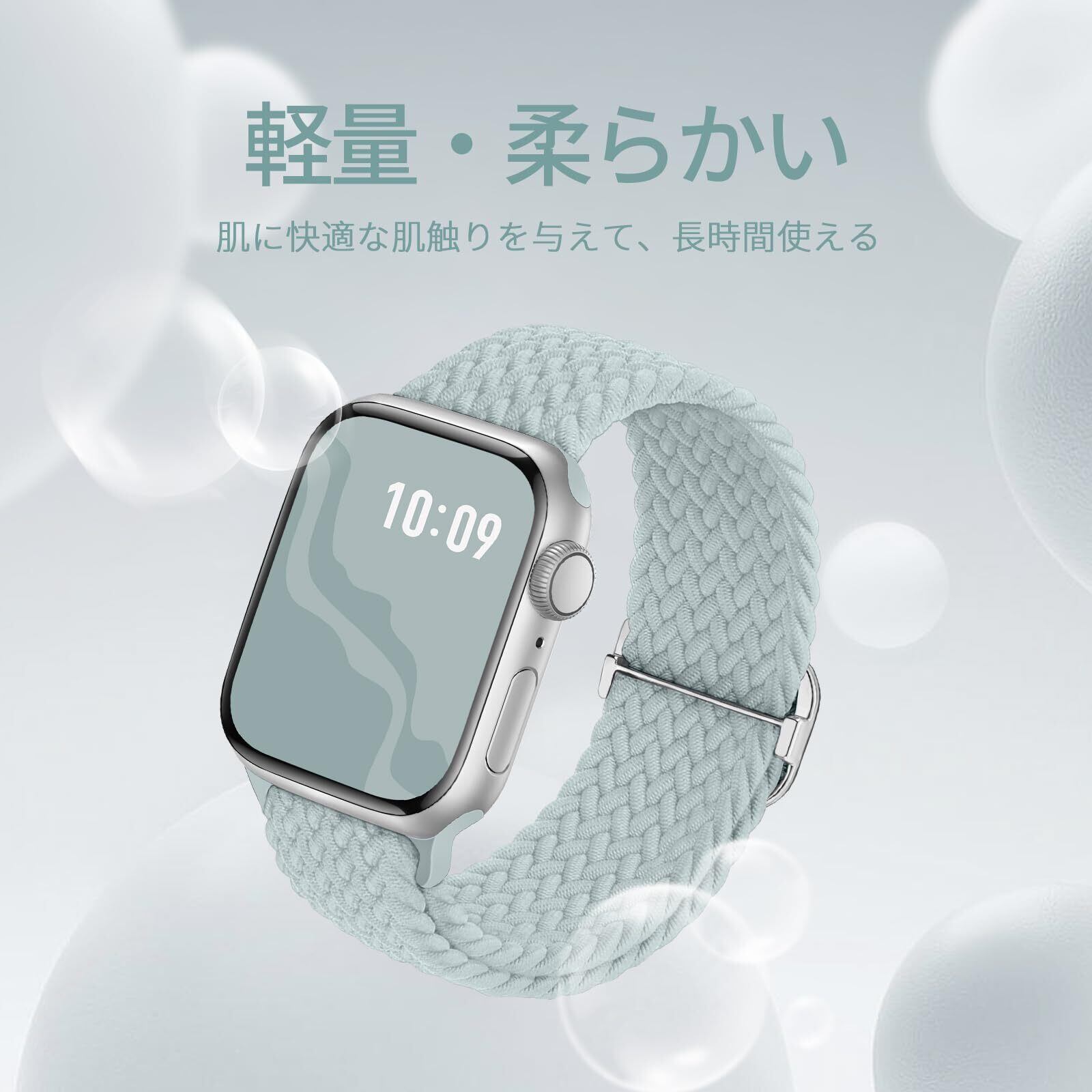 【ユニークな編み込みデザイン】アップルウォッチ 編み込みバンド。伸縮性のある高品質なナイロン糸素材で、高精度な編み込む技術でバンドを織って、特殊な加工で糸が抜けにくいし、何度の着脱も変形にくいです。