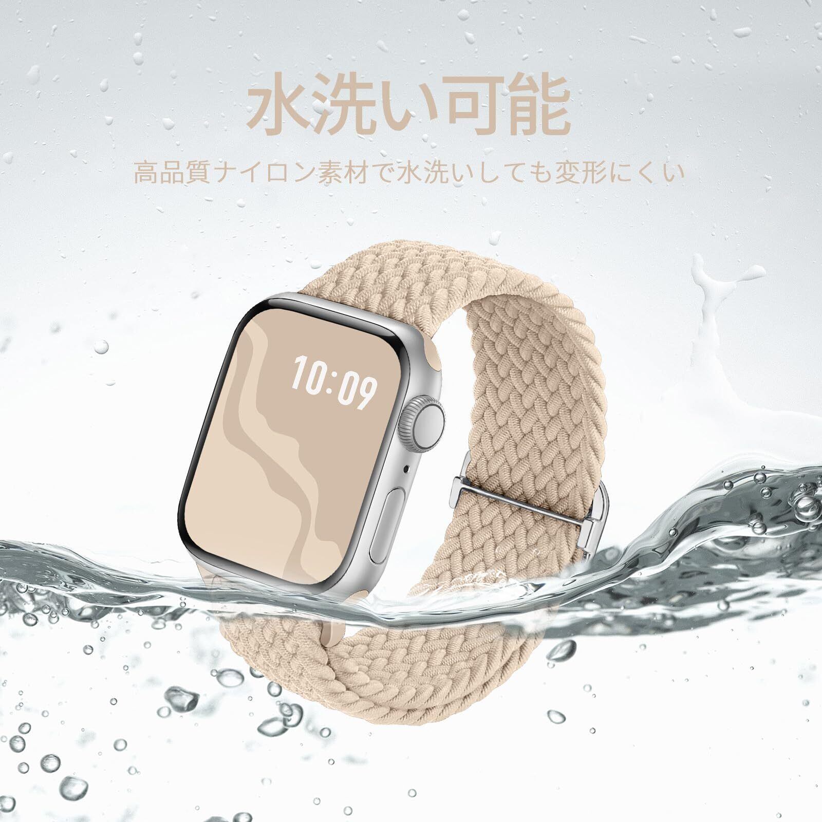 【通気性抜群・水洗える】アップルウォッチ 弾性バンド。網目で通気性が抜群で、スポーツやアウトドアでも乾いた状態を保ちます。ジム、登山、ハイキング、水泳、キャンプ、旅行、さまざまなシーンに適用できます。変形にくい素材なので、汚してしまった場合でも丸洗いこともできて、便利です。