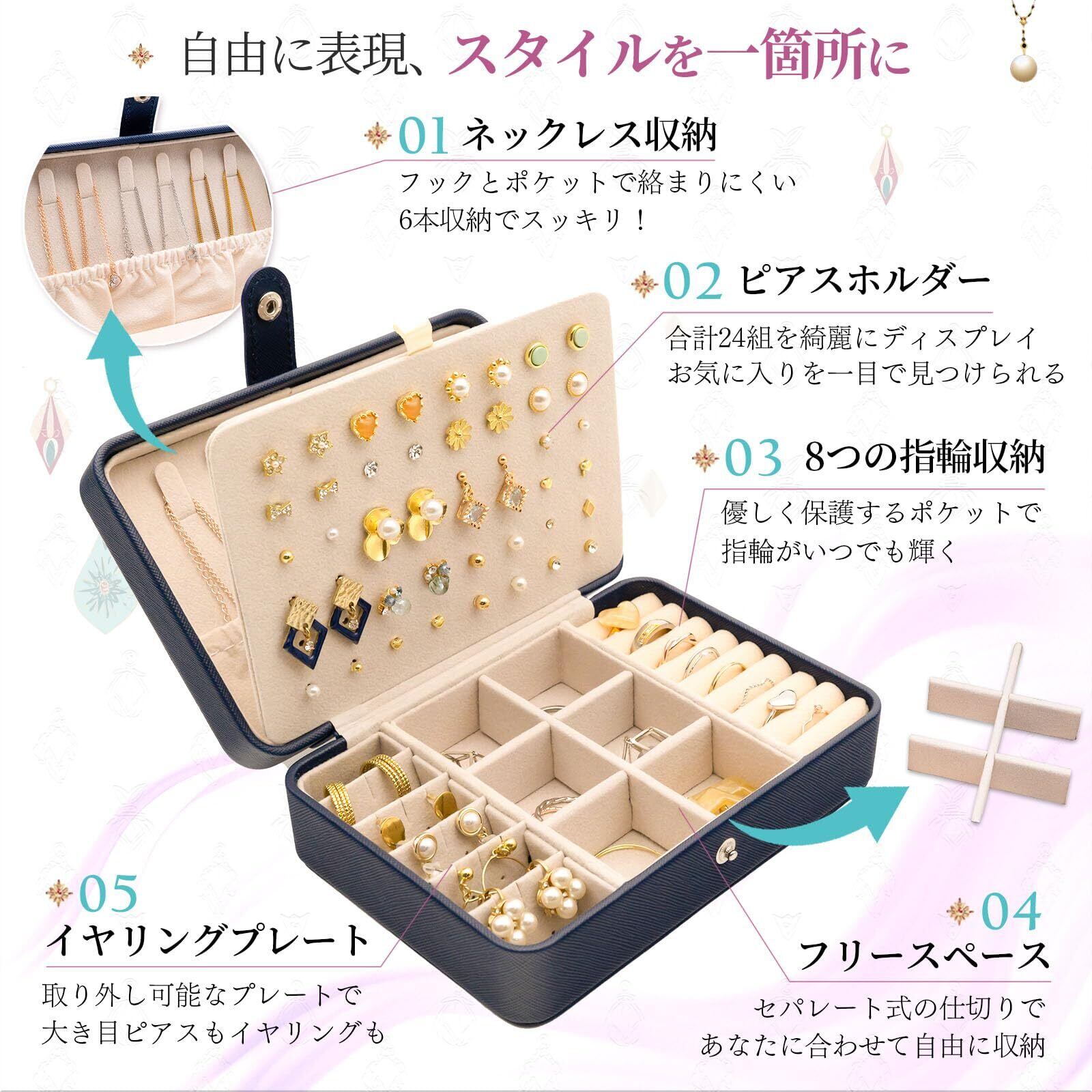 【大切なアクセサリーをしっかり守る】素材に高品質PUレザーと柔らかなベルベットを採用しているので、アクセサリーを傷つけることなく優しくしっかり守ります。防水性の高いPUレザーと型崩れを防ぐ構造で、水や汚れに強く丈夫で長持ち!落ち着いた色とエレガントなデザインがアクセサリーを引き立てるのであなたの日常をより華やかに!