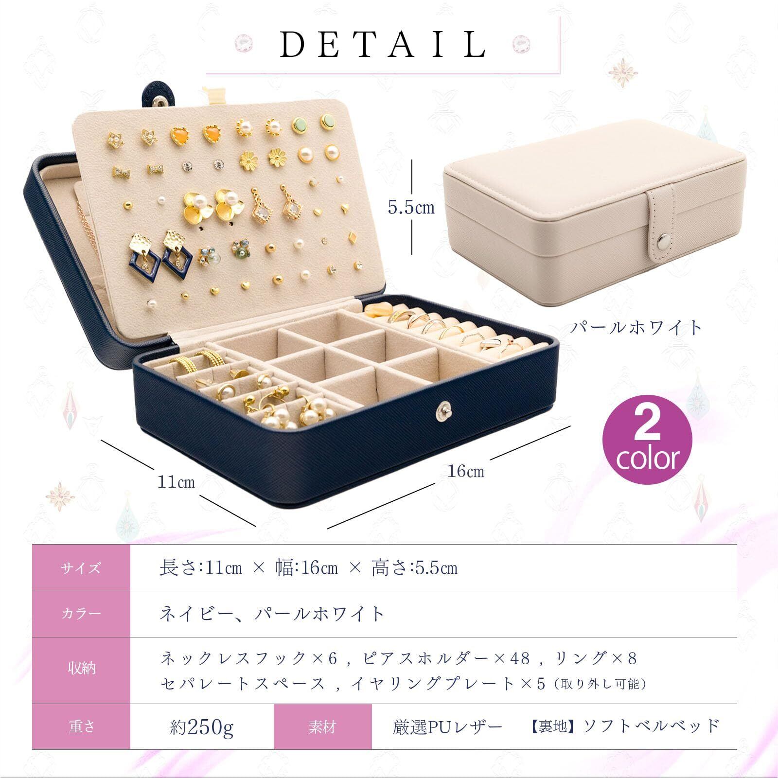 [MNOA.] アクセサリー ジュエリー ケース ボックス 宝石箱 指輪ボックス アクセサリートレー 指輪 ネックレス イヤリング 収納 小物入れ 持ち運び 携帯 贈り物 プレゼント かわいい おしゃれ (L, パールホワイト)