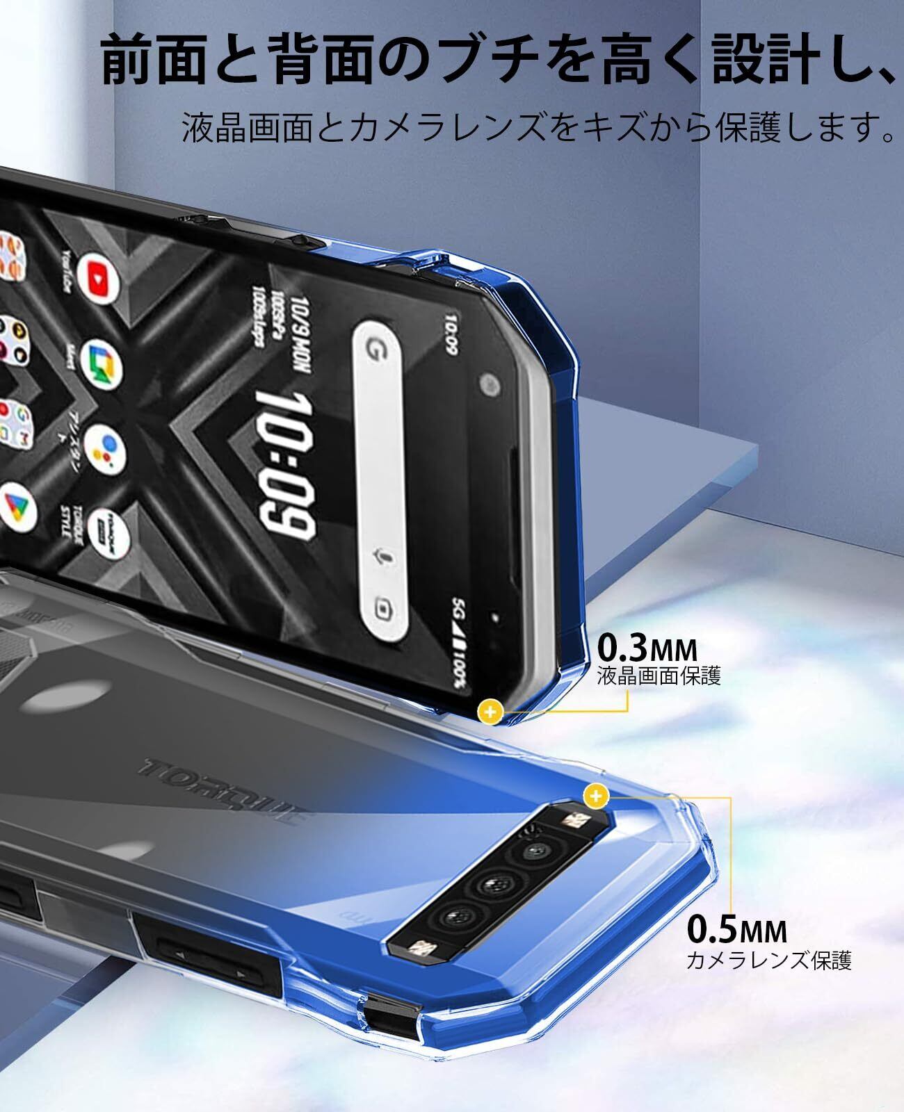 TORQUE G06 KYG03のデザインも損なわず薄型設計* ケースの薄さはわずか0.8MMで、 TORQUE G06 KYG03の美しさそのままにさらに美しく。 * 好みのシールなど入れ可能 *