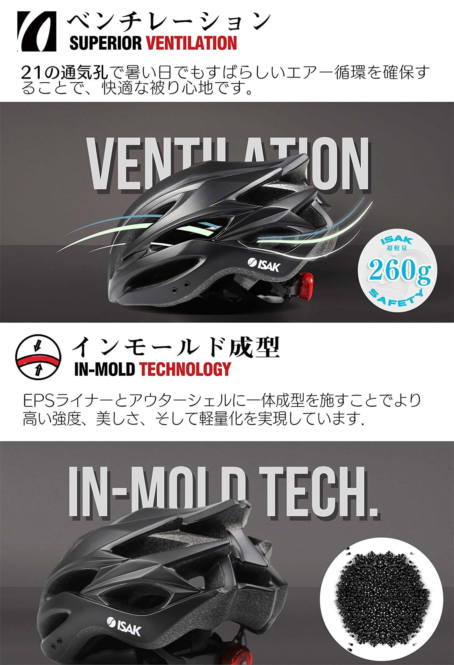 ISAK ヘルメット 超軽量 磨き砂質感 自転車用 サイクルヘルメット スポーツ 【衝撃吸収/安全/通勤/通学/サイクリング】 56-61cm調整可能 大人/ジュニア用