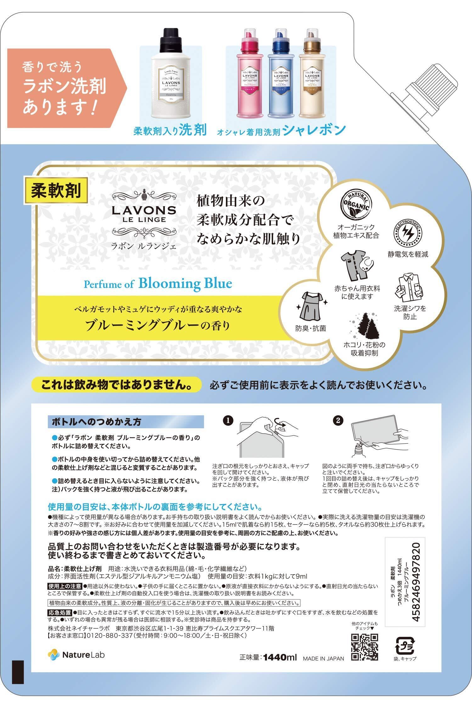 ラボン(Lavons) 柔軟剤 特大 ブルーミングブルー [ホワイトムスク] 詰め替え 3倍サイズ 1440ml