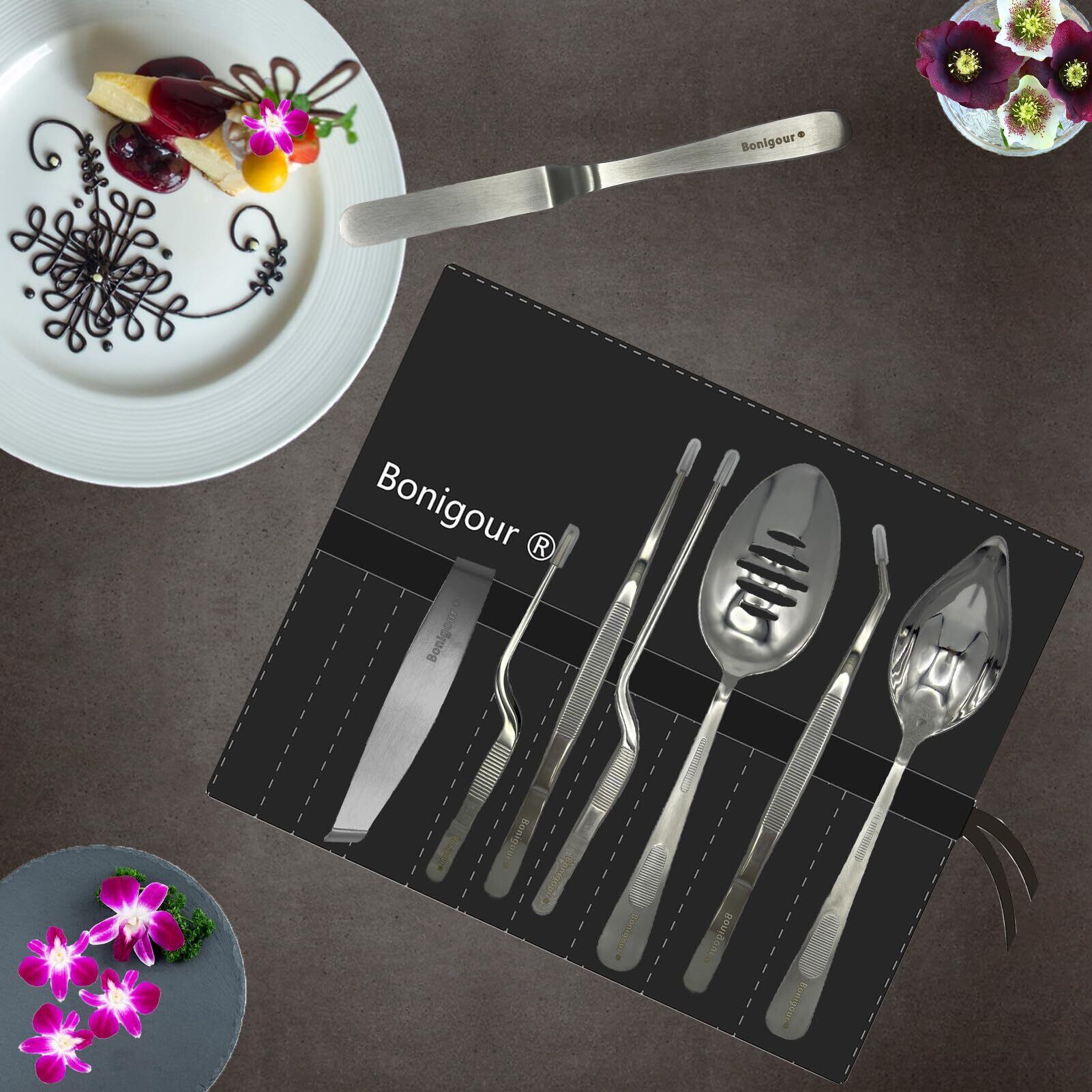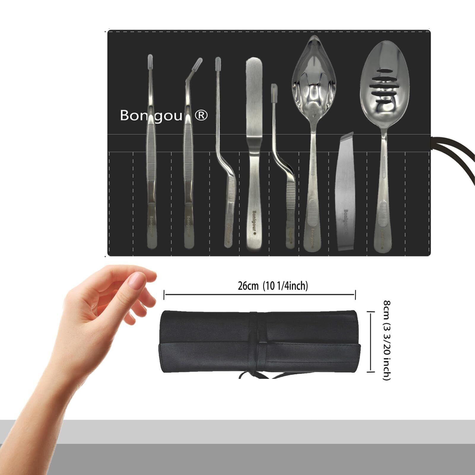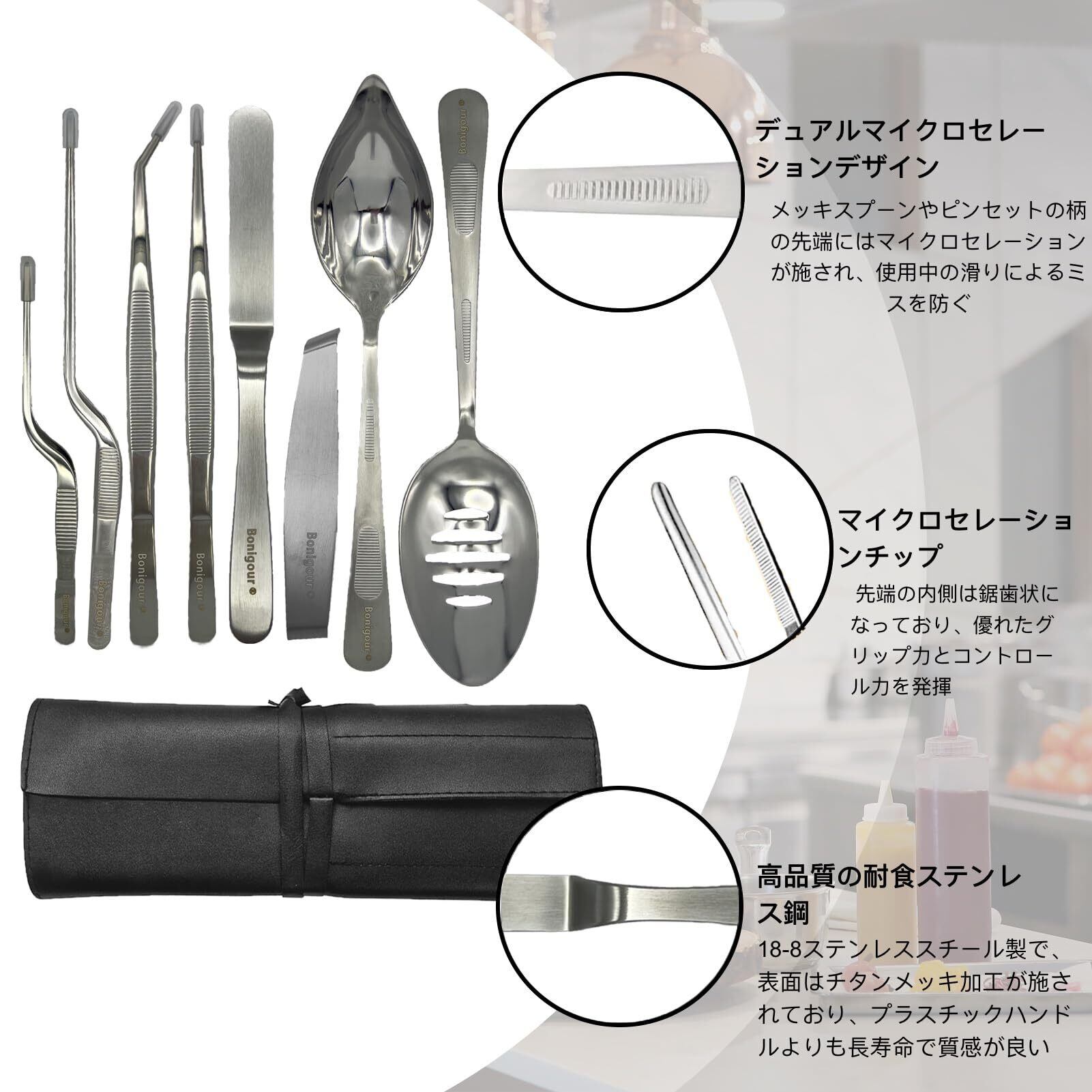 [高品質構造] Bonigourシェフツールは、適切かつ長持ちする使用のための18-8ステンレス鋼で作られています。ポリッシュ電気メッキプロセス料理ツールセットは、理想的なバランスと最適なコントロールのために錆びにくく、特別に設計されています